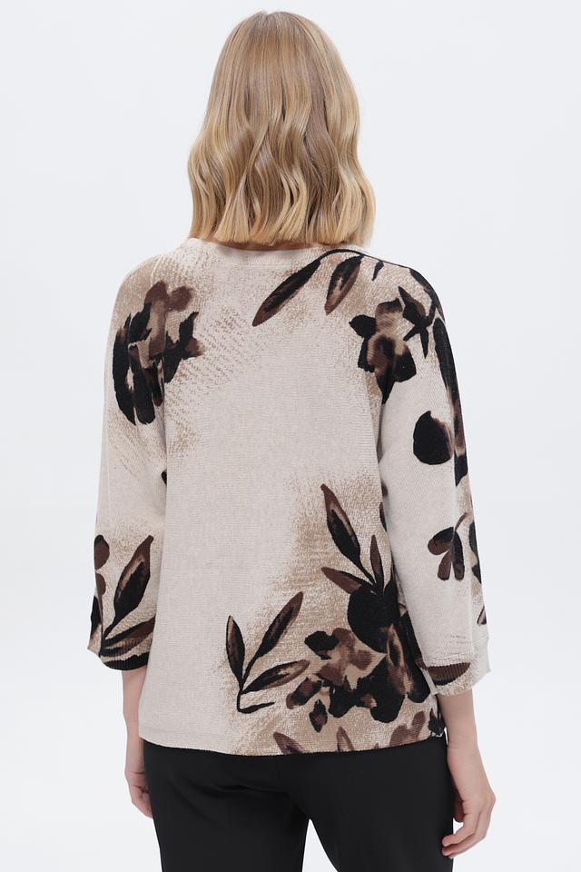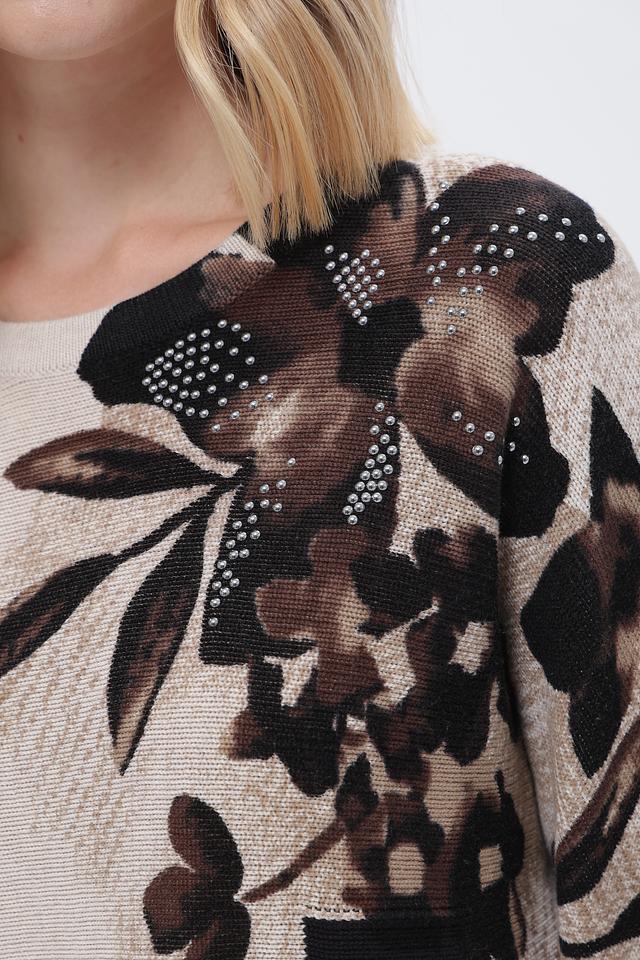 Бежевый пуловер Betty Barclay с оригинальным цветочным принтом и декоративной отделкой из страз. Изготовлен из мягкого трикотажа, обеспечивающего комфорт и удобство. Идеальный выбор для создания элегантного повседневного образа. Состав: хлопок 100%