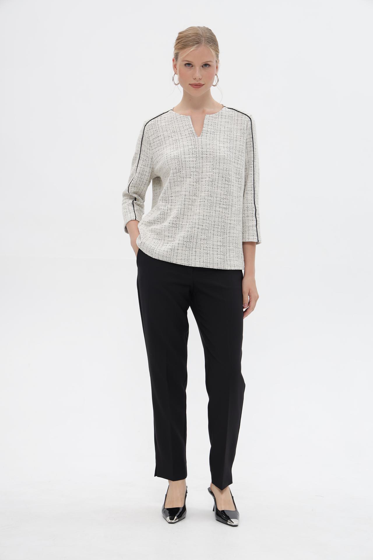 - Универсальность: Модель легко сочетается с различными блузами, рубашками и жакетами, позволяя создавать множество стильных и актуальных ансамблей для любого случая.