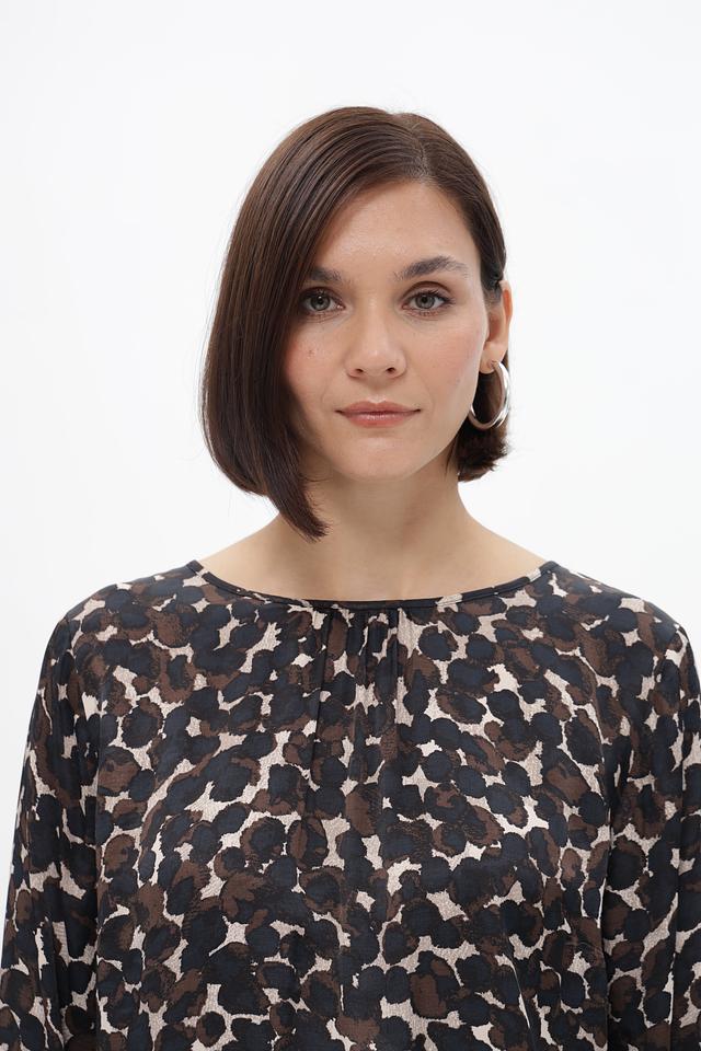 Представляем вам элегантную блузку от Betty Barclay, выполненную в коричневой цветовой гамме с эффектным принтом. Эта блузка станет прекрасным выбором для создания стильных и комфортных образов.