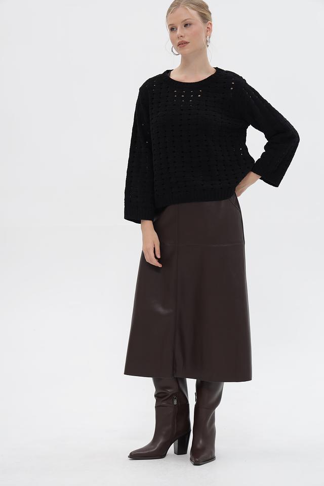 Представляем стильную юбку от бренда Betty Barclay, выполненную из высококачественной экокожи коричневого цвета.