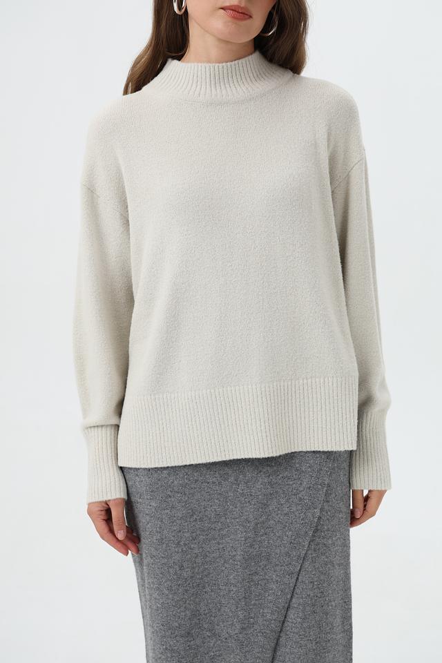 Пуловер имеет высокий ворот, который добавляет образу изысканности. Свободный крой не стесняет движений и позволяет создавать различные комбинации с другой одеждой. Длинные рукава делают этот пуловер идеальным для прохладной погоды.