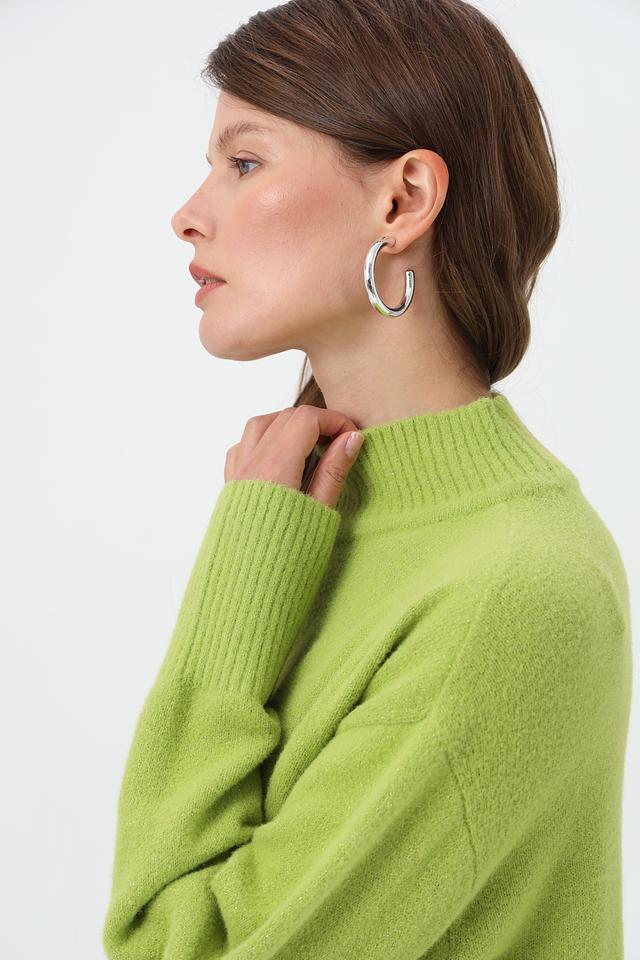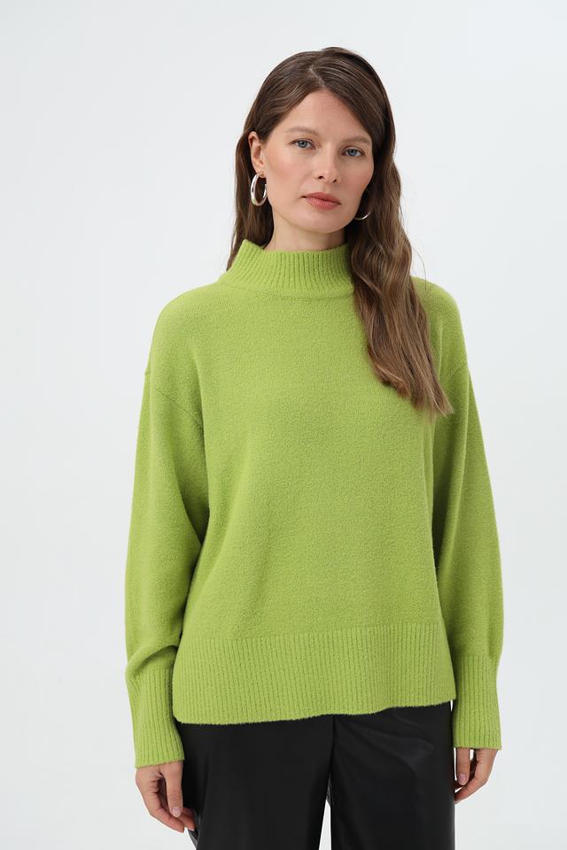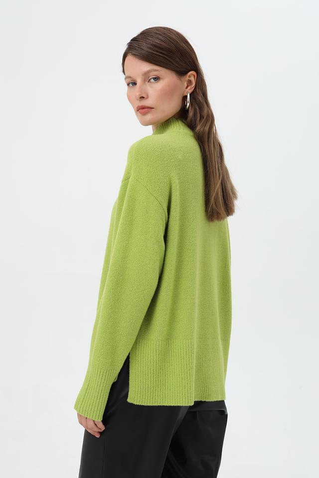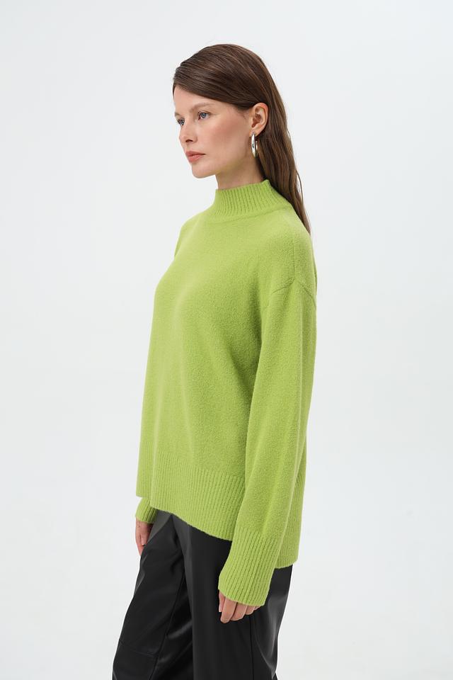 Пуловер имеет высокий ворот, который придаёт изделию элегантность и утончённость. Свободный крой обеспечивает комфорт и свободу движений, позволяя создавать расслабленные, но при этом стильные образы.