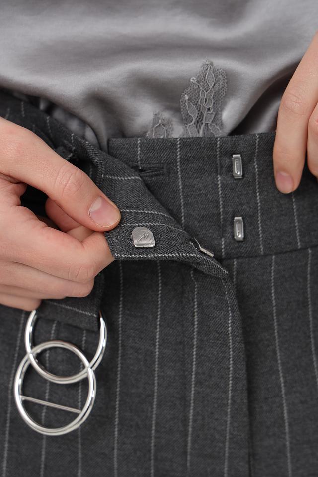 Брюки дополнены стильным поясом с оригинальной металлической пряжкой, что подчеркивает их современный дизайн.