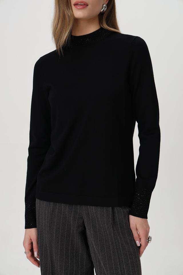 Чёрный пуловер Betty Barclay с изящным декором камней — стильное дополнение к вашему гардеробу. Модель выполнена из мягкого трикотажа с длинными рукавами и высоким горлом. Состав: вискоза 72%, полиамид 28%