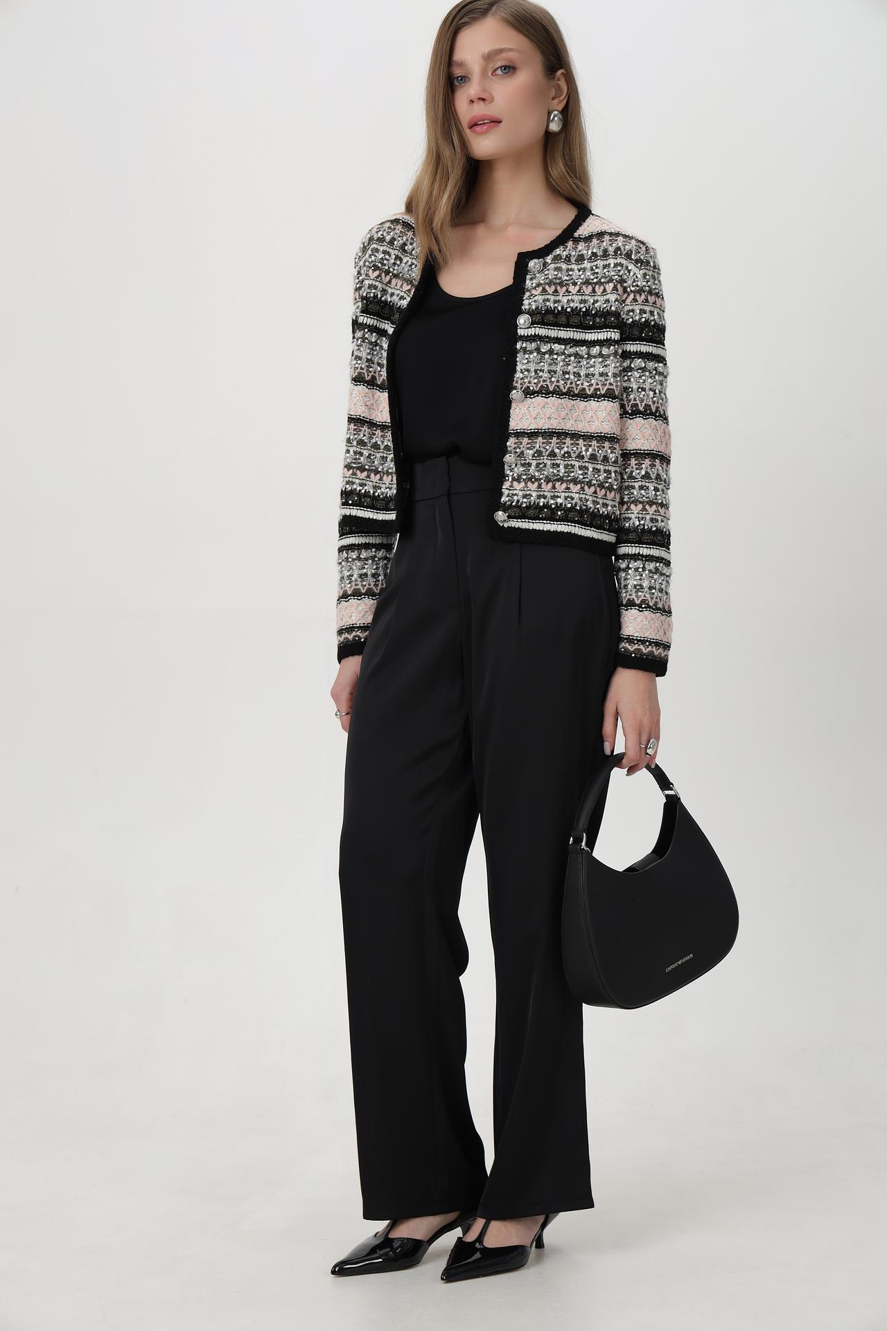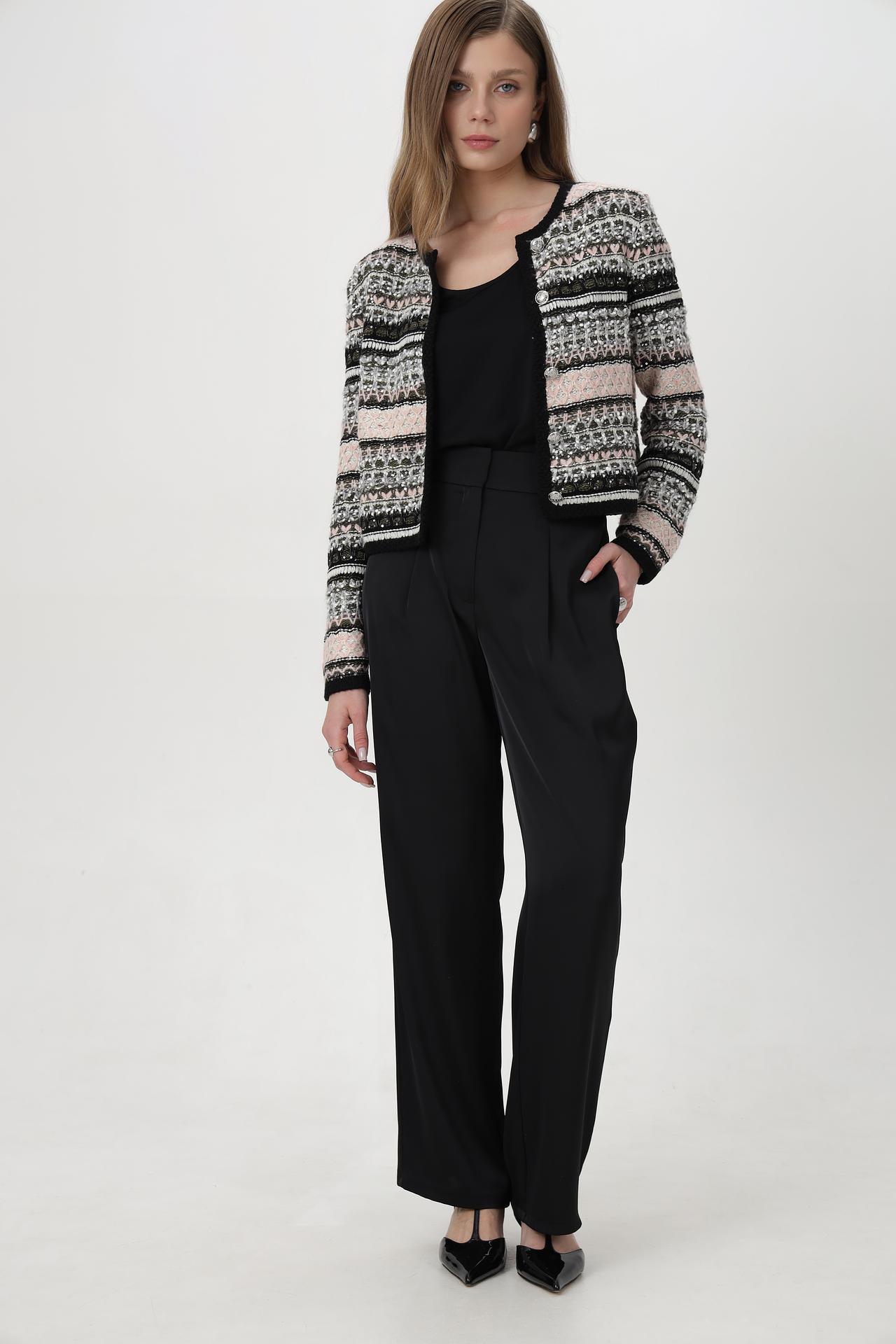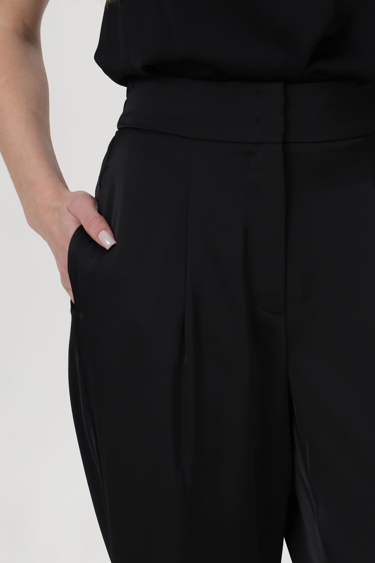 - Детали: Высокая талия, складки на передней части брючин, застежка на молнии и пуговицах. Эти элементы добавляют изысканности и функциональности.