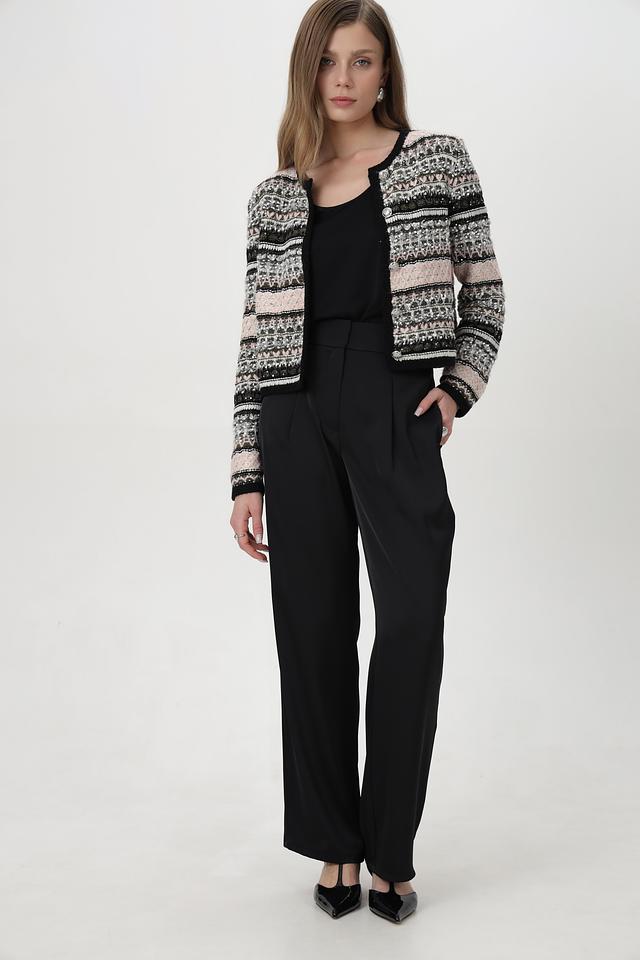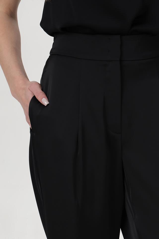 Данные брюки легко сочетаются с различными видами верха: блузками, рубашками, топами и жакетами. Они идеально подходят для работы, учебы или особых случаев. Черный цвет делает брюки максимально универсальными и позволяет легко комбинировать их с другими элементами одежды и аксессуарами.