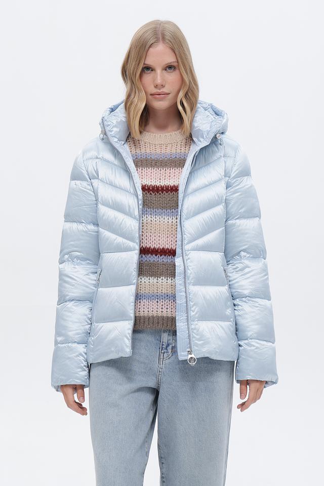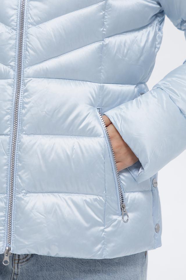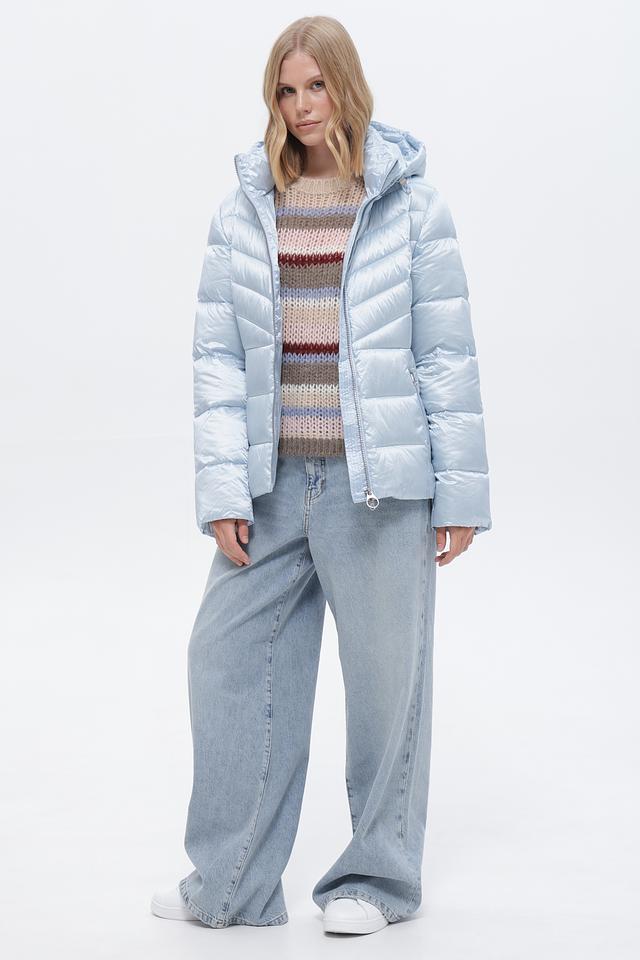 Представляем вашему вниманию женскую куртку от бренда Betty Barclay. Модель выполнена в нежном голубом цвете с легким серебристым отливом, что придает ей элегантный вид.