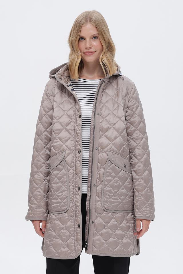 Стеганая куртка Betty Barclay серого цвета — это стильное и практичное решение для прохладной погоды. Изготовлена из 100% полиамида, имеет удобный капюшон и функциональные карманы. Состав: полиамид 100%