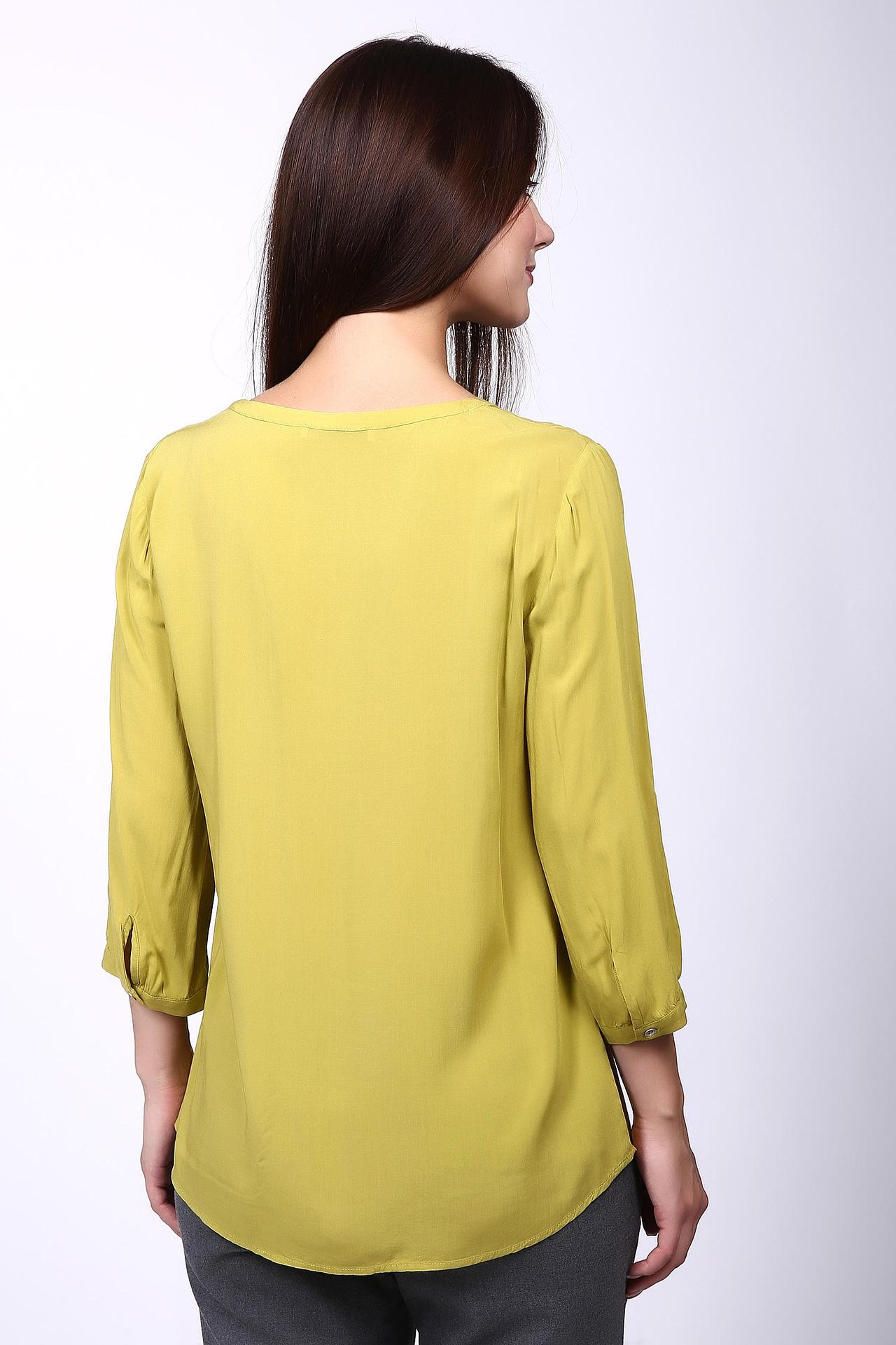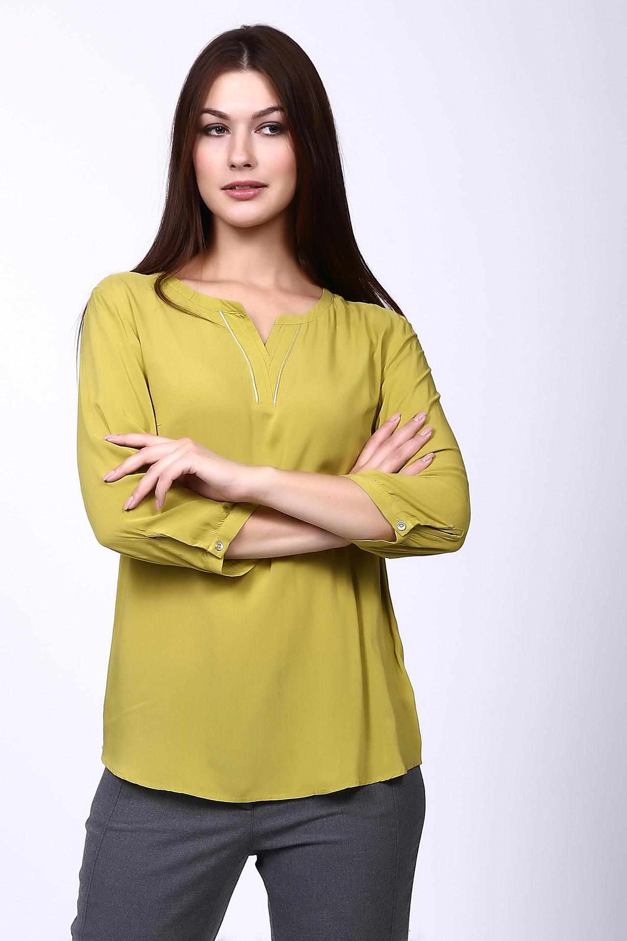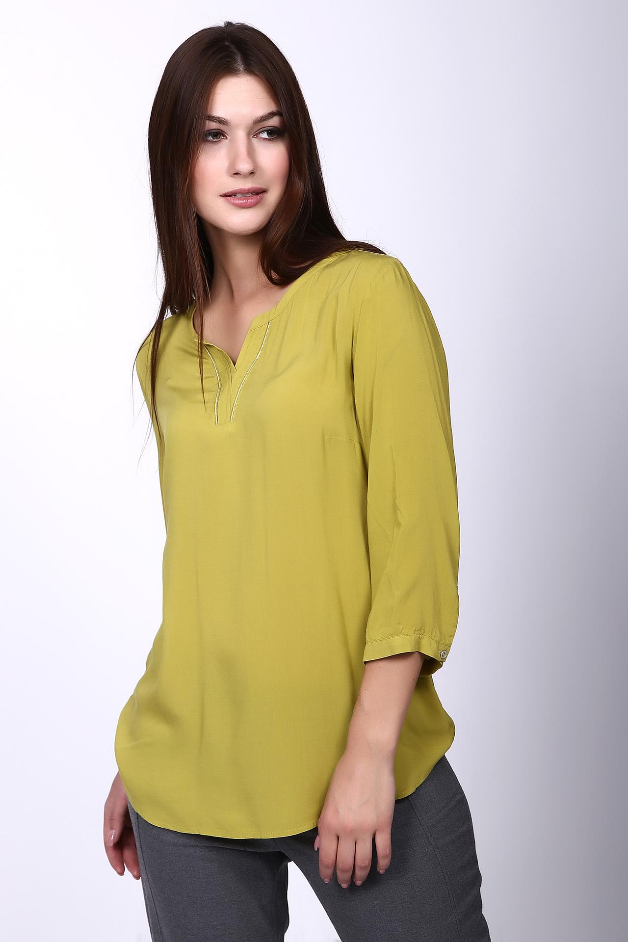 Блуза зеленого цвета фирмы Betty Barclay. Ткань состоит из 100% вискозы. Модель выполнена прямым фасоном. Блуза дополнена округлым воротом V - образным разрезом, втачным рукавом 3\4 длины с манжетой на пуговицу. Низ блузы подшит полукругом. Блуза пополнит ваш гардероб и всегда пригодится для различных мероприятий. Гармонировать может с брюками классического фасона.