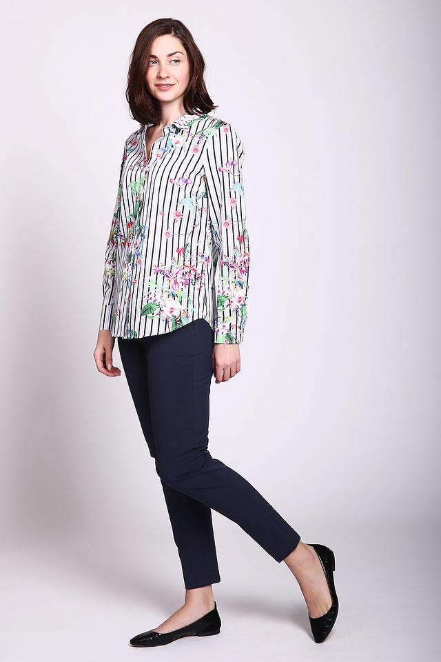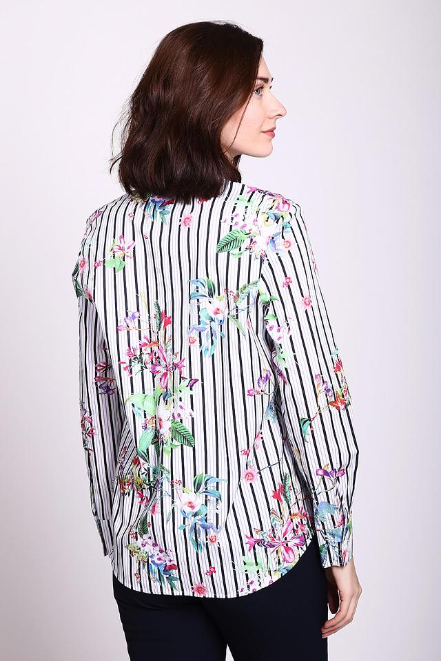 Блуза женская белого цвета фирмы Betty Barclay.Ткань состоит из 3% эластана и 97% хлопка. Модель выполнена прямым покроем. Блуза дополнена откладным воротом, длинными, втачными рукавами с манжетой на пуговицы, застежка на пуговицы. Ткань имеет принт. Рубашка практична и удобна. Сможет объединить ваш наряд.