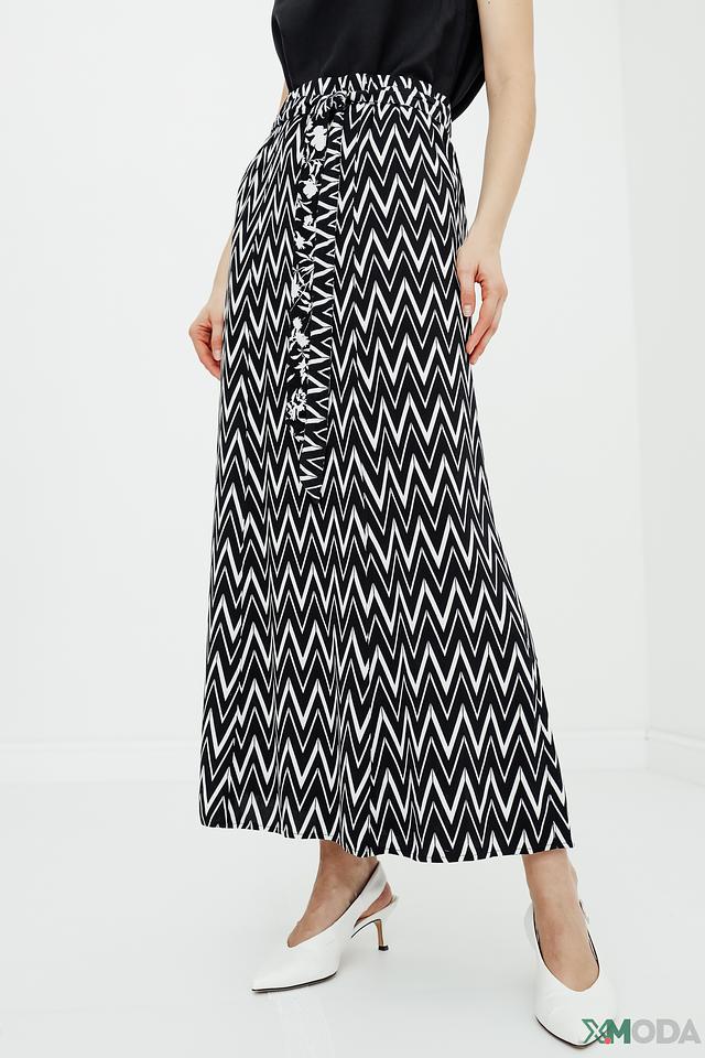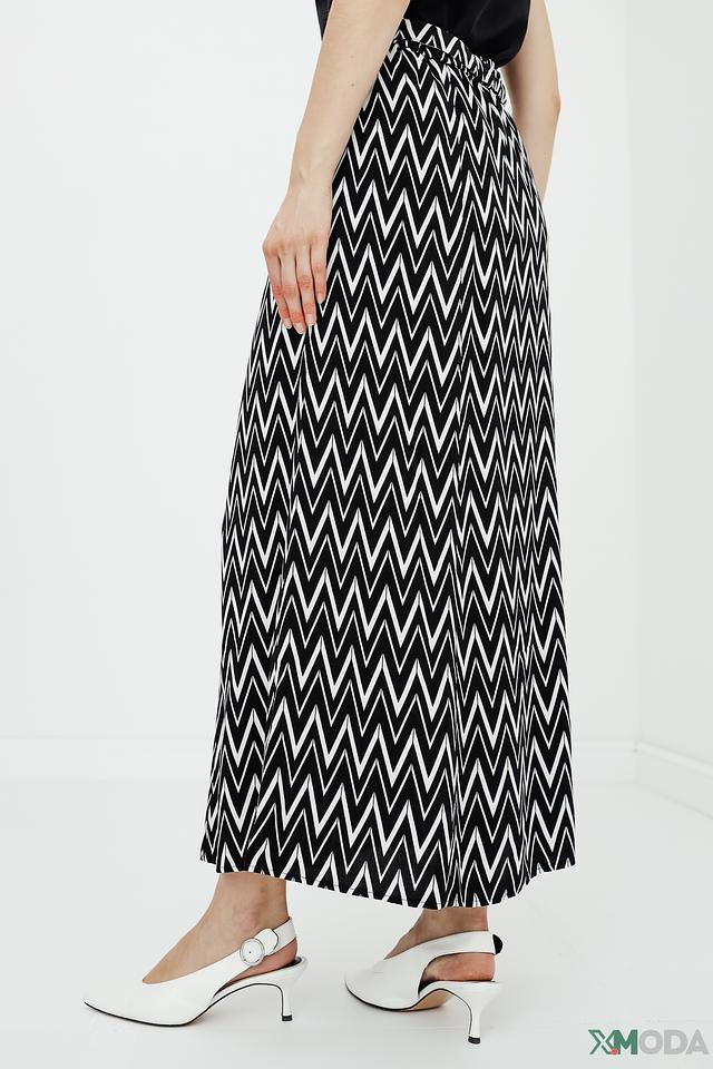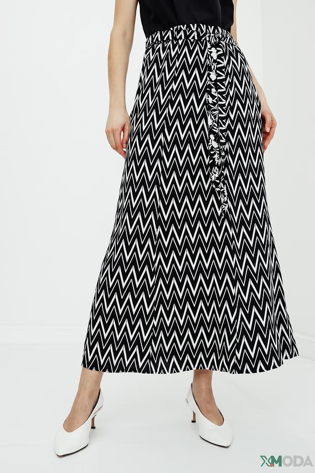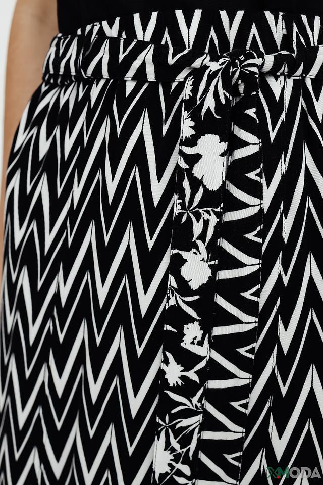 Юбка Betty Barclay чёрно-белого цвета с геометрическим принтом "зигзаг" станет стильным дополнением вашего гардероба. Модель выполнена из мягкой вискозы, имеет завышенную талию и удобный пояс. Состав: вискоза 100%