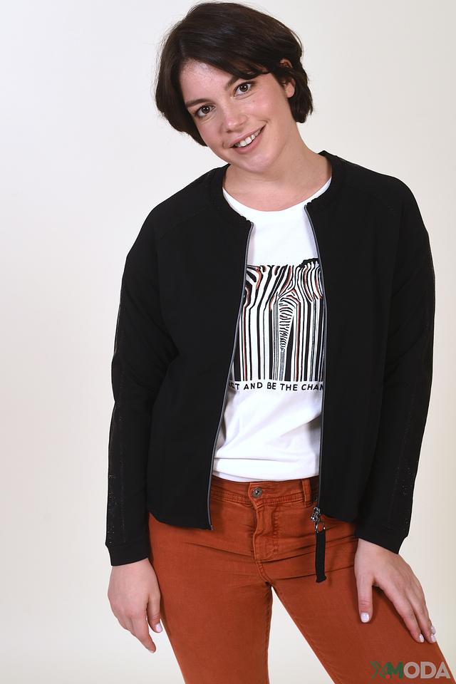 Чёрный жакет Betty Barclay с застёжкой на молнию – стильная и удобная модель на каждый день. Жакет выполнен из мягкой ткани с добавлением хлопка, модала и эластана, что обеспечивает комфорт в носке и отличную посадку по фигуре. Состав: хлопок 82%, модал 13%, эластан 5%