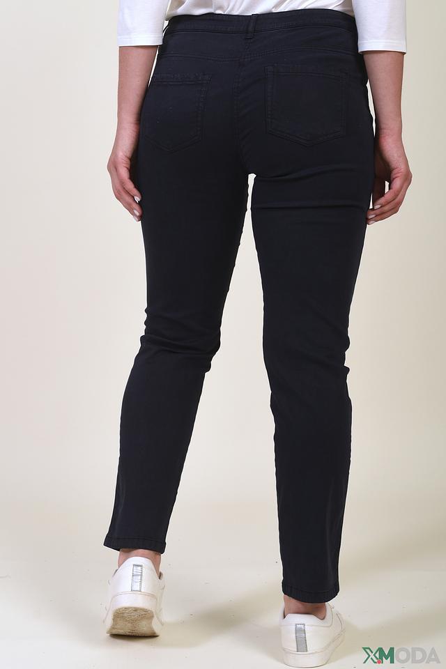 Модель оснащена стандартным поясом с петлями для ремня, а также двумя боковыми и двумя задними карманами. Ткань имеет лёгкую текстуру, напоминающую деним, что добавляет брюкам изысканности. Состав: 59% лиоцел, 38% хлопок, 3% эластан.