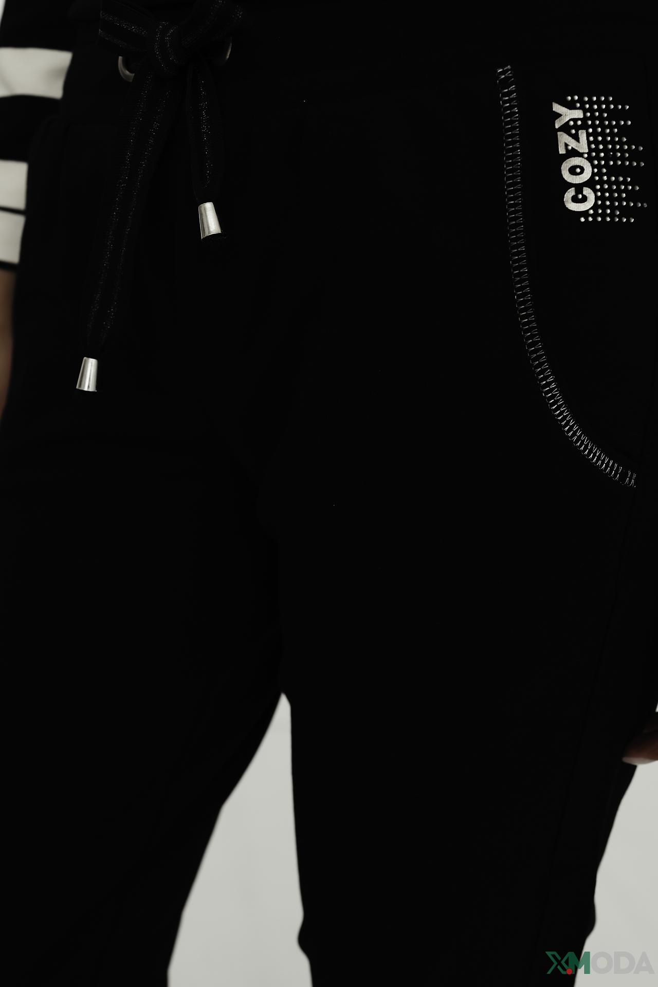- Детали: Эластичный пояс с регулируемым шнурком гарантирует комфортную посадку. Оригинальный принт с надписью "COZY" и декоративная отстрочка карманов добавляют изделию индивидуальности и модного акцента.