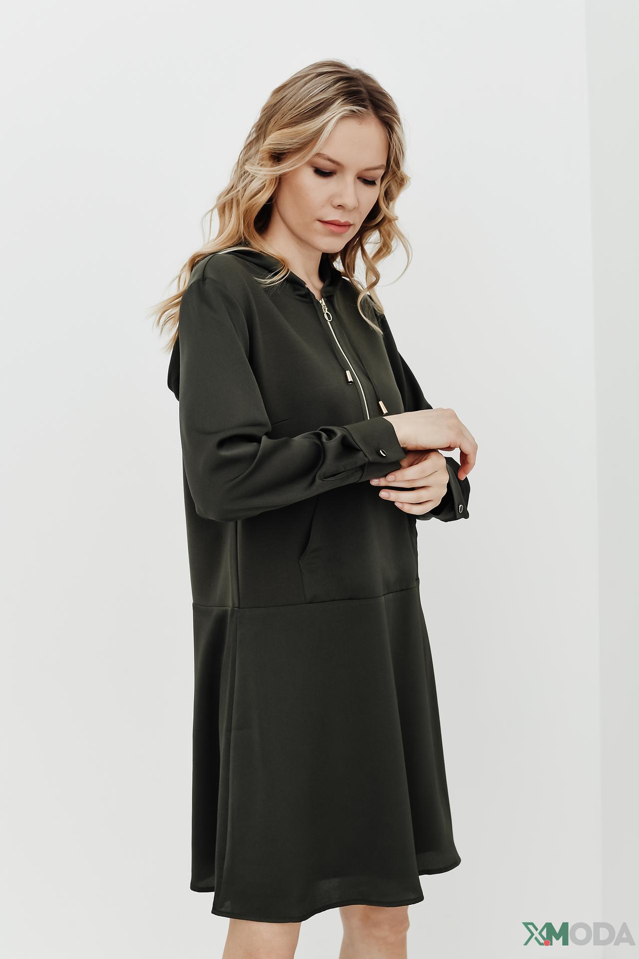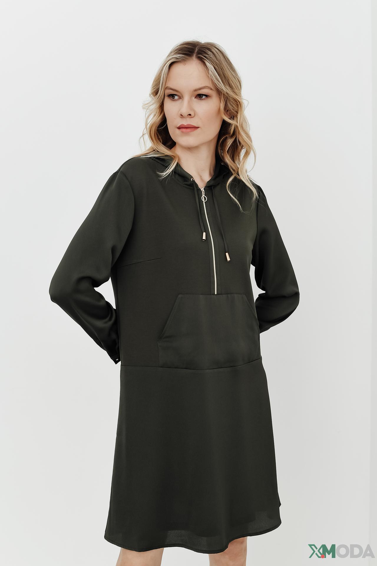 - Стильный дизайн: Платье с капюшоном и молнией добавляет образу современности и динамичности.