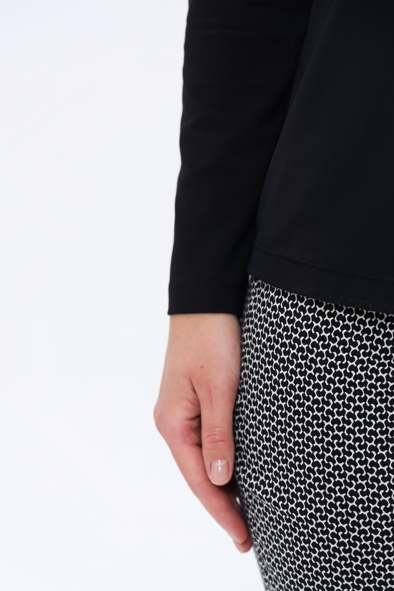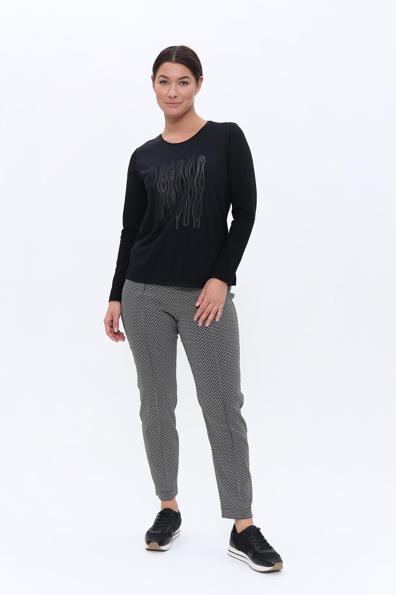 Стильный лонгслив Bianca — идеальное дополнение к вашему повседневному гардеробу. Модель выполнена в классическом черном цвете и украшена оригинальным серебристым принтом, который придает образу изюминку. Лонгслив станет универсальной основой для множества образов, легко сочетаясь с брюками, юбками и джинсами.