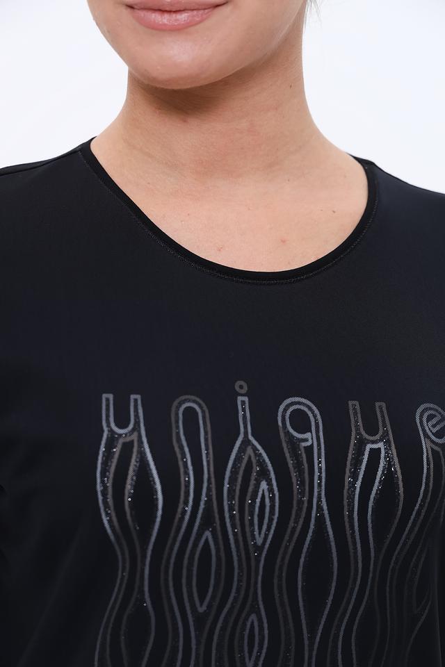 Чёрный лонгслив от Bianca с оригинальным графичным принтом. Изготовлен из мягкого хлопка с добавлением эластана для комфортной посадки и свободы движений. Идеально подходит для создания повседневных образов. Состав: хлопок 92%, эластан 8%