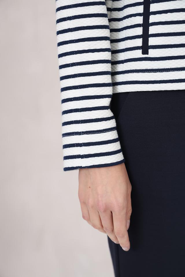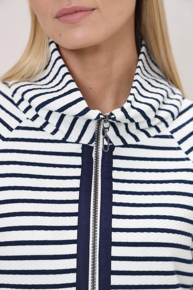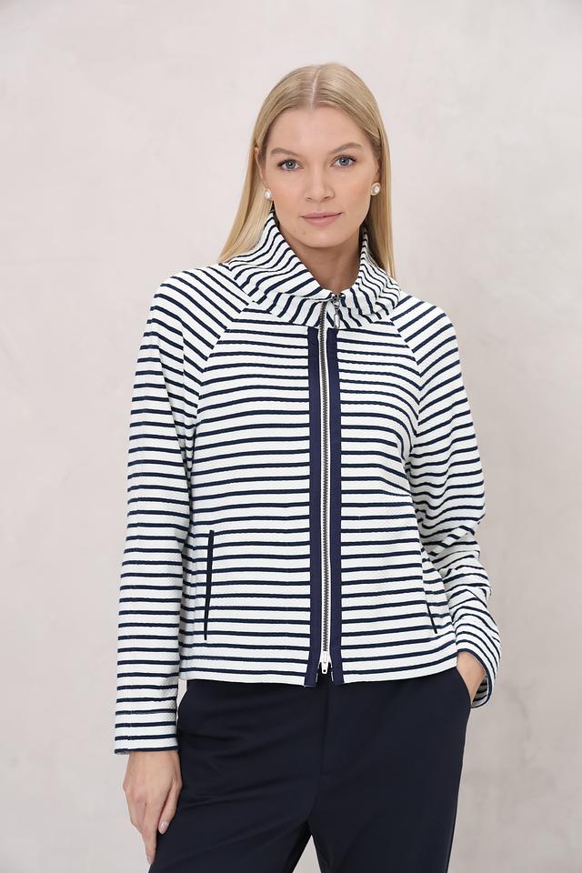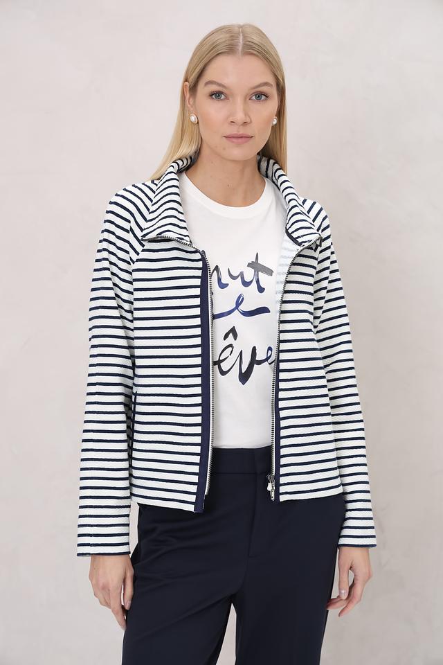 Жакет Bianca – это стильная модель в бело-синюю полоску с застежкой на молнию. Удобный крой и актуальный дизайн делают этот жакет отличным выбором для создания повседневных образов. Состав: хлопок 60%, полиэстер 35%, эластан 5%