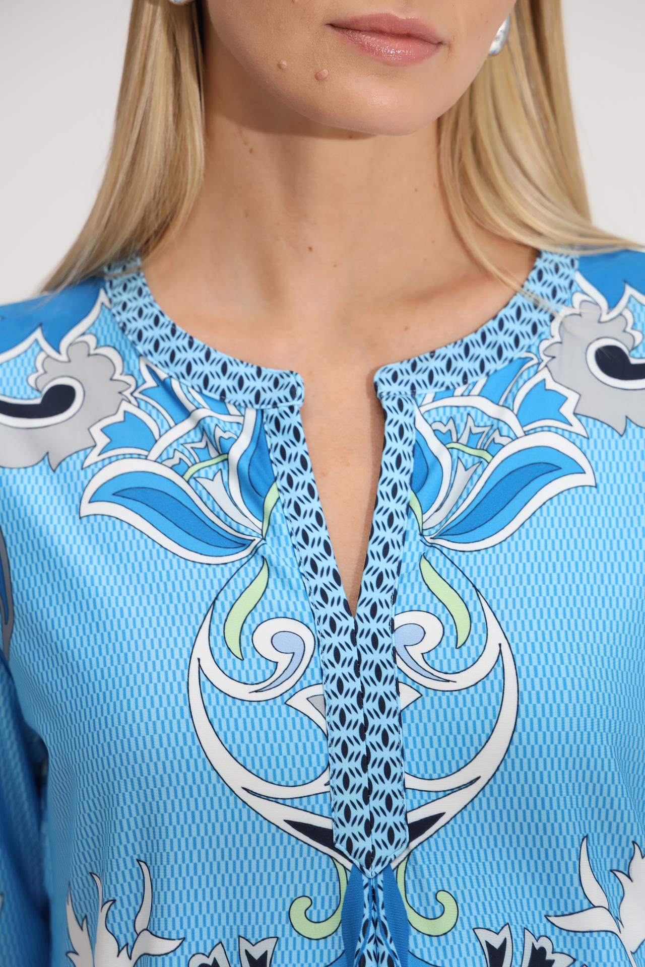 - Яркий принт: Цветочный рисунок придает образу индивидуальность и свежесть.