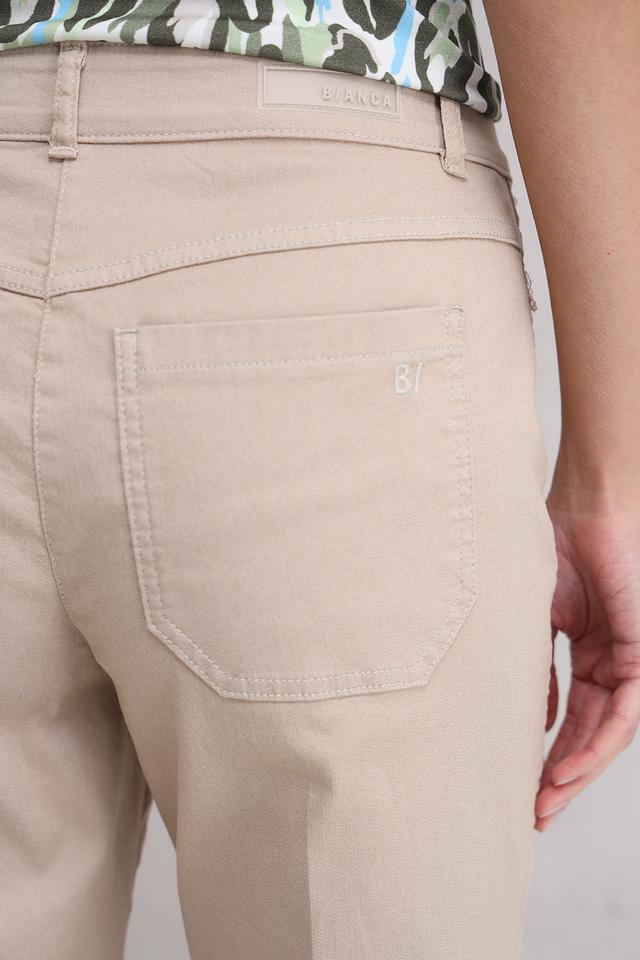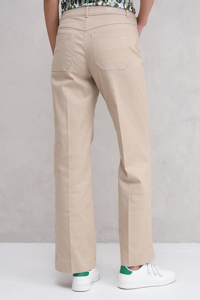 Представляем вашему вниманию джинсы от бренда Bianca. Эта модель выполнена в бежевом цвете и имеет прямой, слегка расклешенный к низу крой – палаццо. Джинсы изготовлены из высококачественного хлопка с добавлением полиэстера и эластана, что обеспечивает комфорт при носке и сохранение формы.