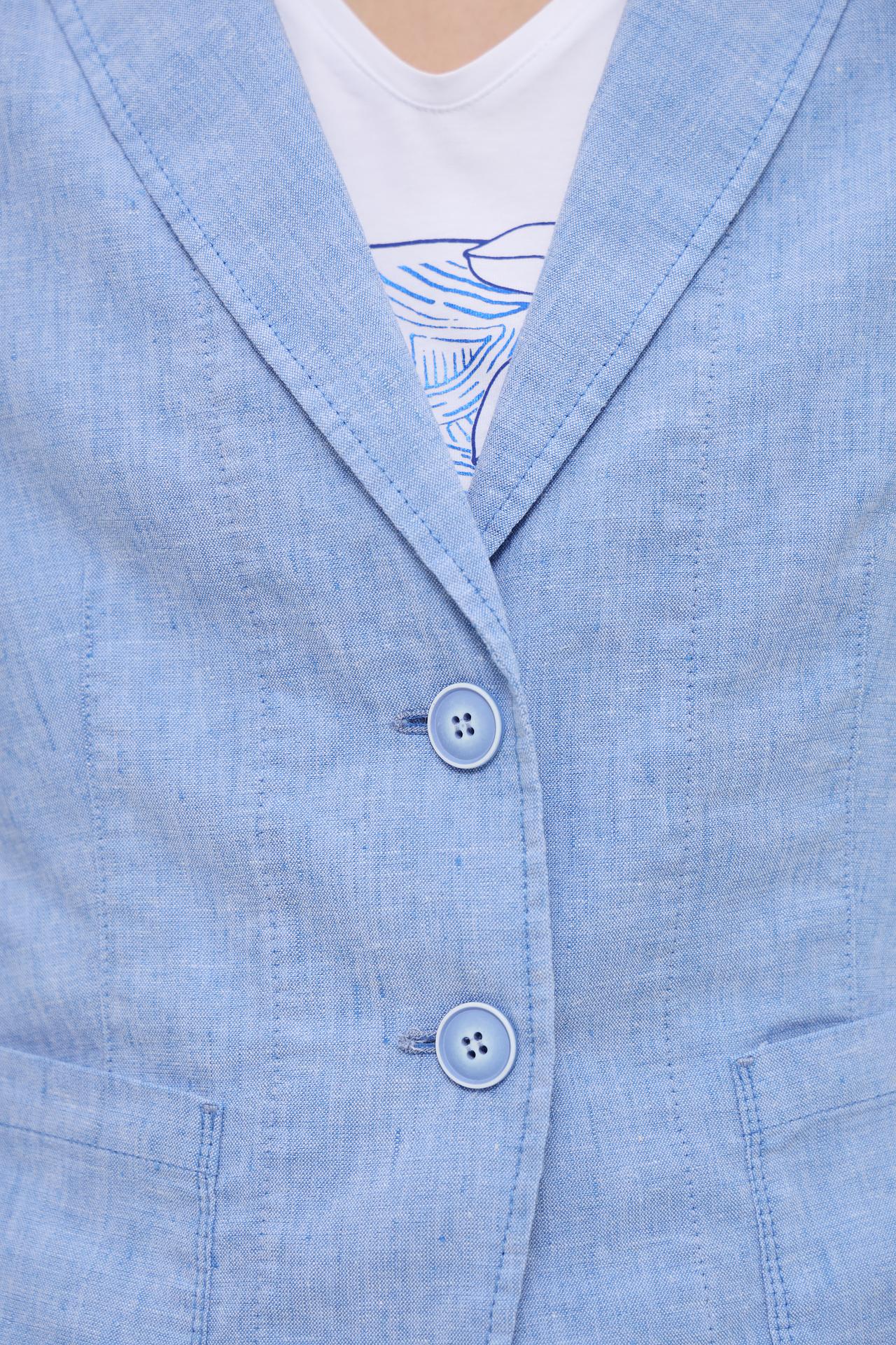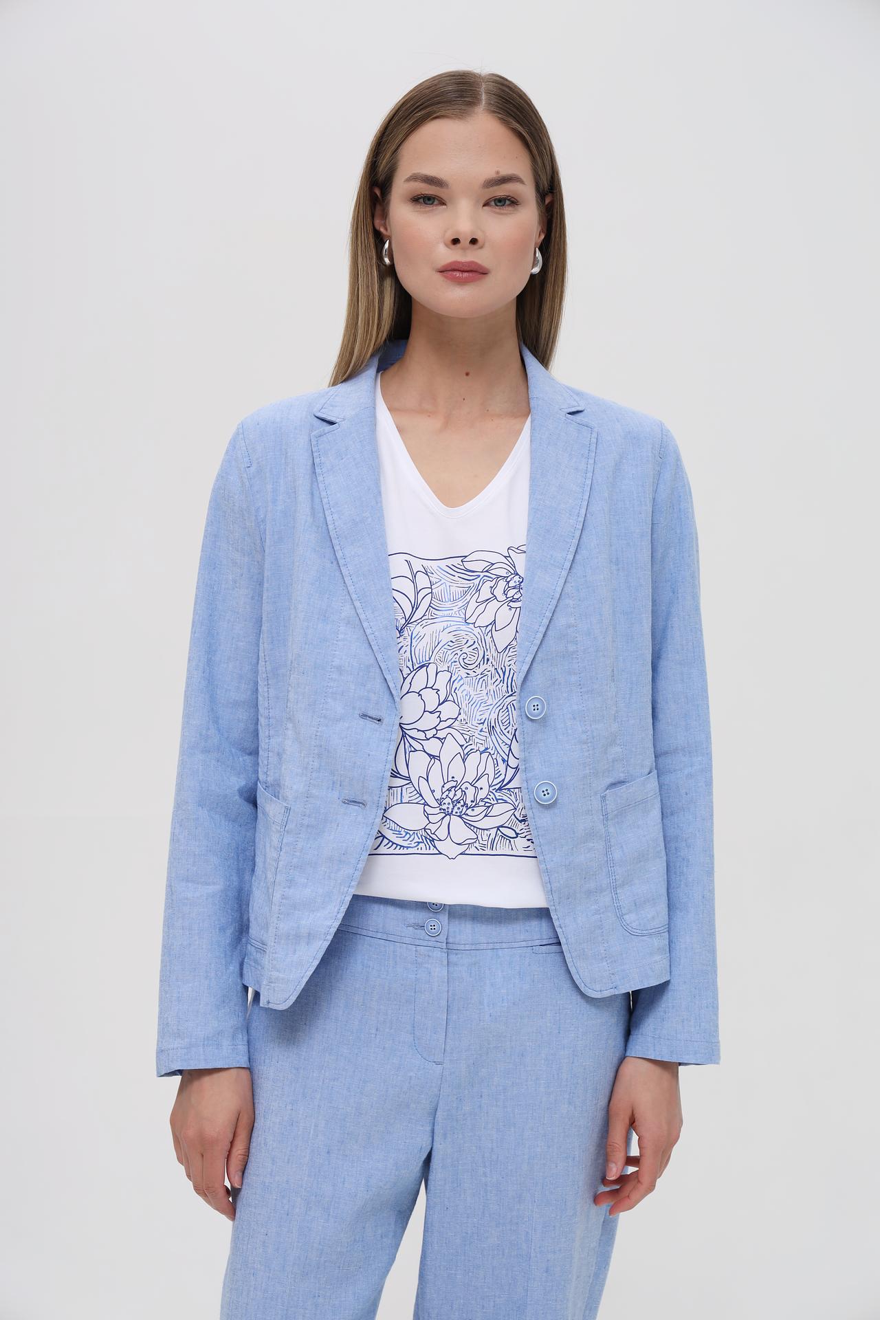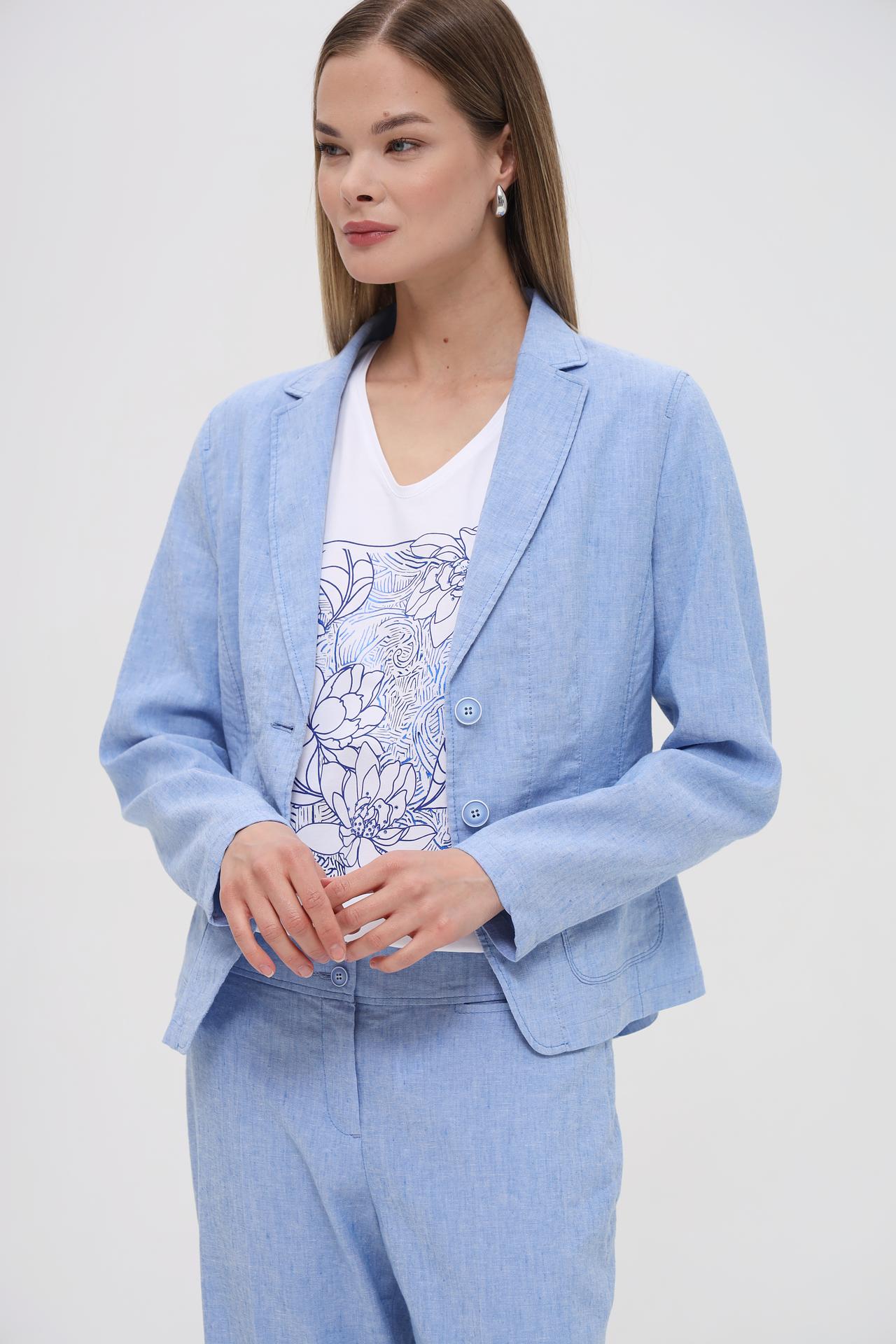 Лёгкий льняной жакет Bianca - идеальный выбор для создания элегантного и непринужденного образа. Натуральные ткани обеспечивают комфорт в теплую погоду, а классический крой подчеркивает достоинства фигуры. Этот жакет станет прекрасным дополнением к вашему гардеробу и подойдет для различных случаев, от деловых встреч до летних прогулок.
