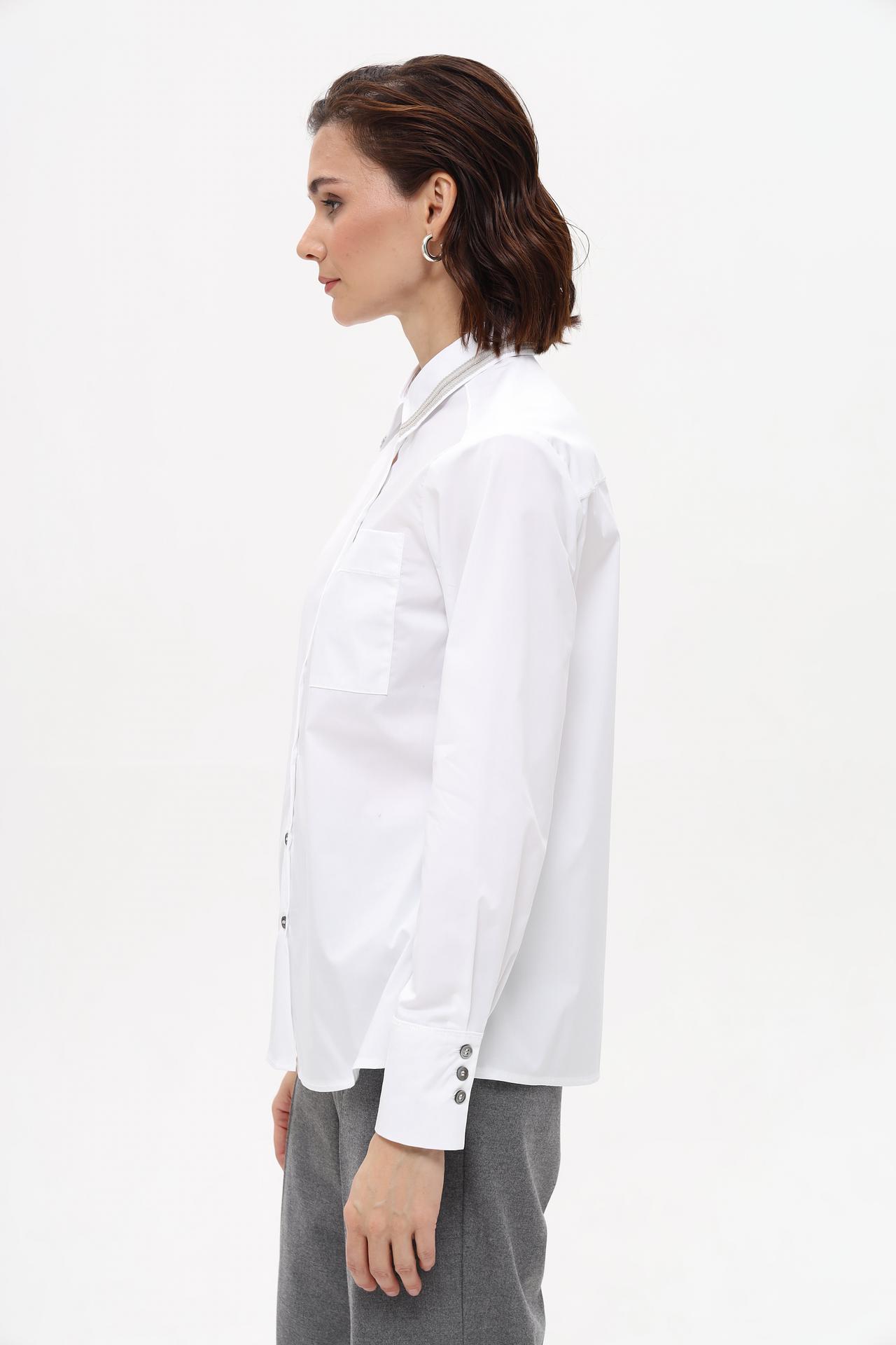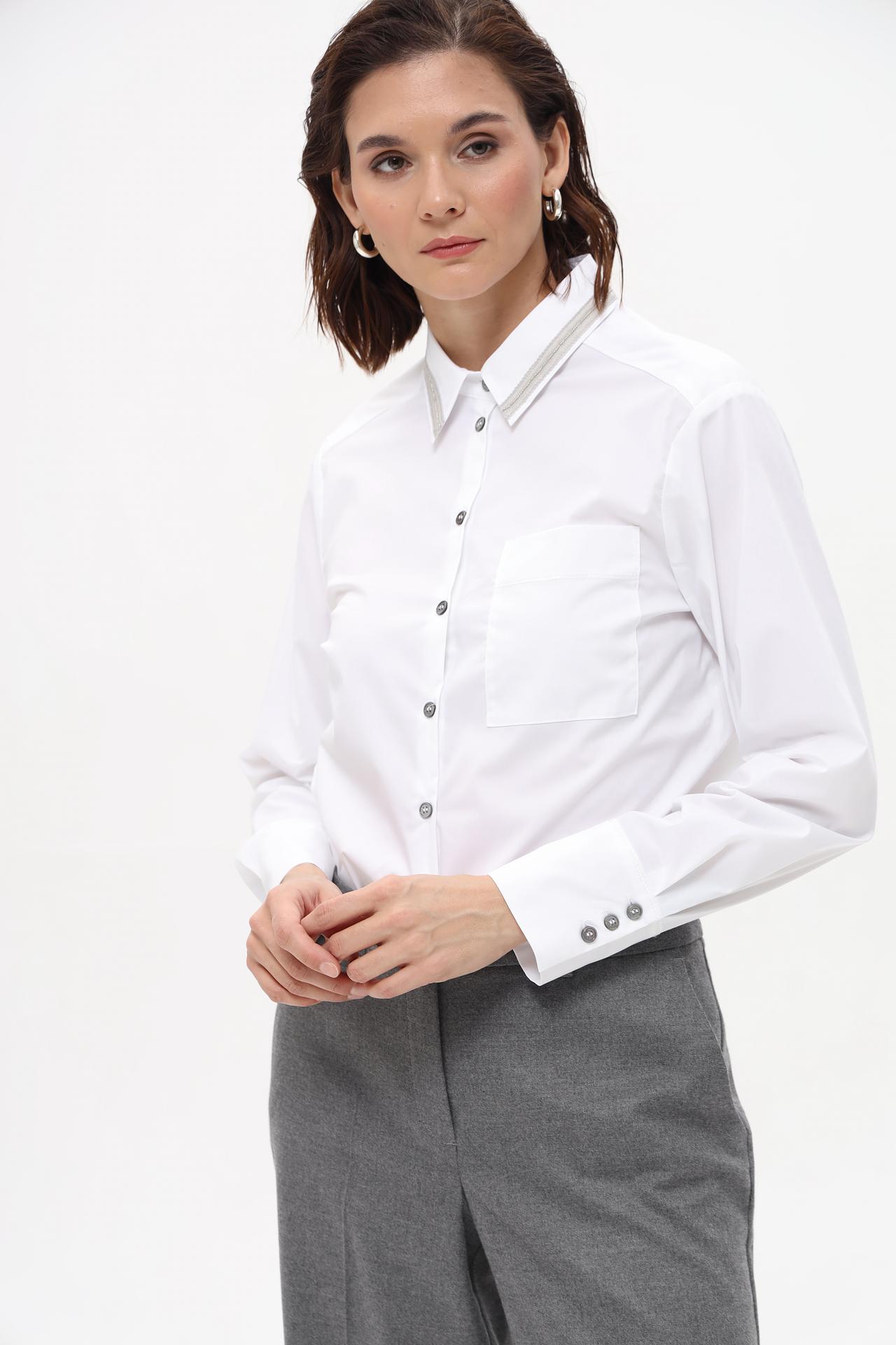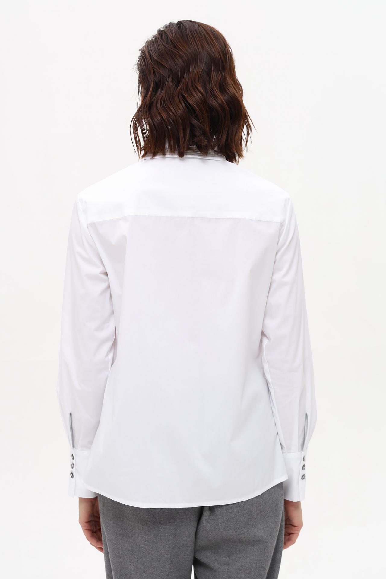 - Элегантный дизайн: Классический крой с акцентом на деталях делает эту рубашку незаменимой для создания деловых и элегантных образов.