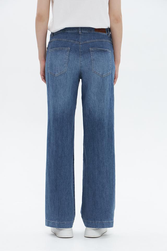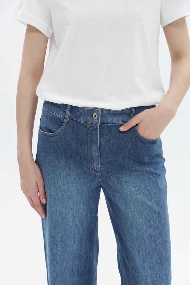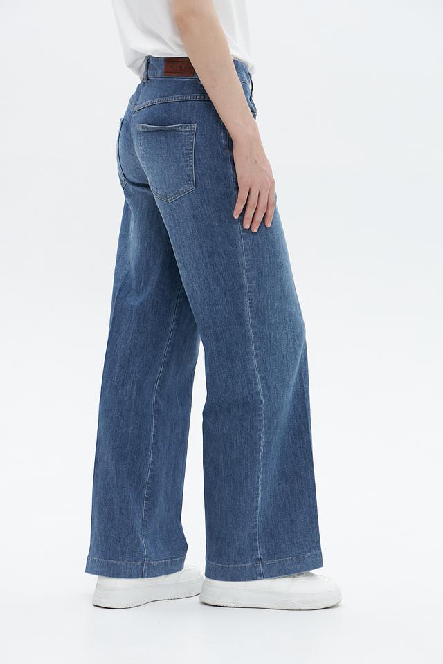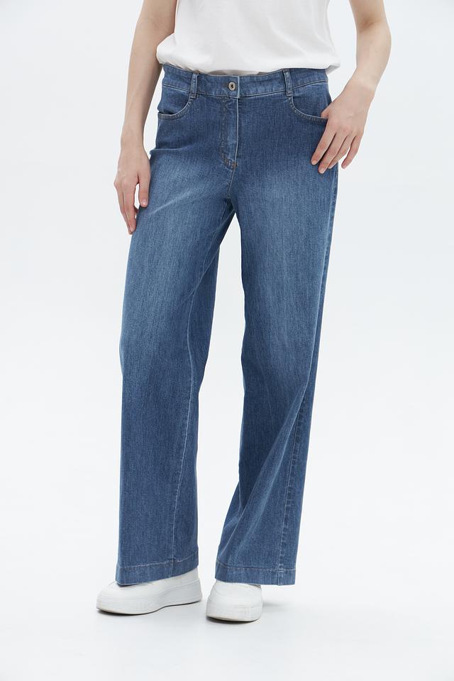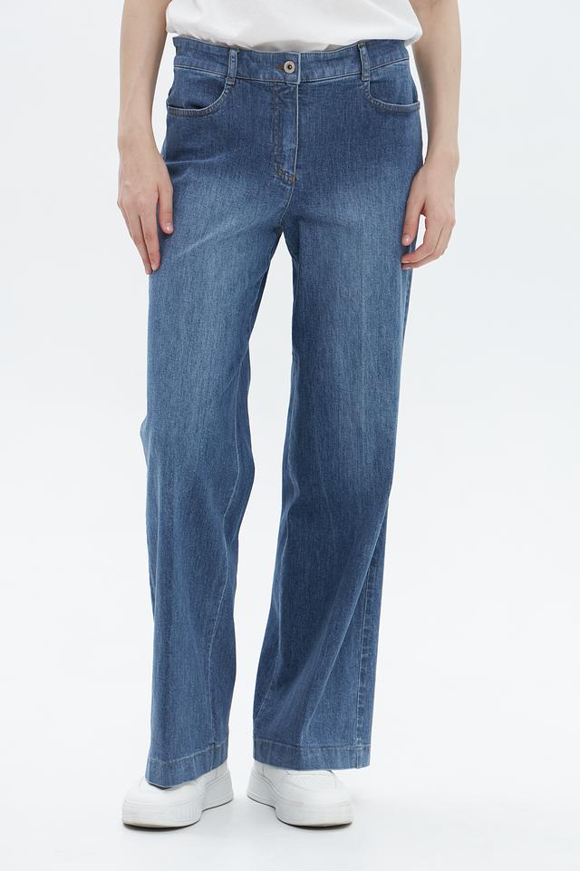 Синие джинсы клеш от Bianca из хлопка с добавлением эластана. Модель имеет классическую посадку и удобный крой. Состав: хлопок 98%, эластан 2%
