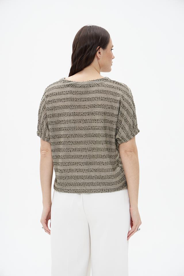 Женская футболка Bianca бежевого цвета с оригинальным геометрическим узором. Изготовлена из сочетания полиэстера и вискозы, обеспечивающих комфорт и приятные тактильные ощущения. Стильный и универсальный вариант для создания повседневных образов. Состав: полиэстер 68%, вискоза 32%