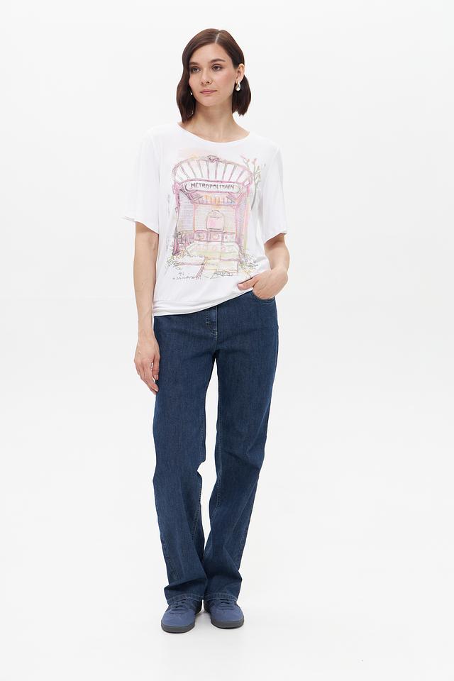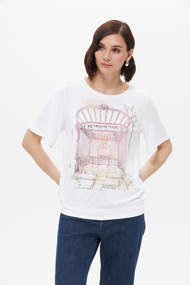 Белая футболка Bianca с оригинальным принтом в виде изображения парижского метро. Изготовлена из мягкой вискозы с добавлением эластана для комфорта и хорошей посадки. Стильный и удобный вариант для повседневного образа. Состав: вискоза 92%, эластан 8%