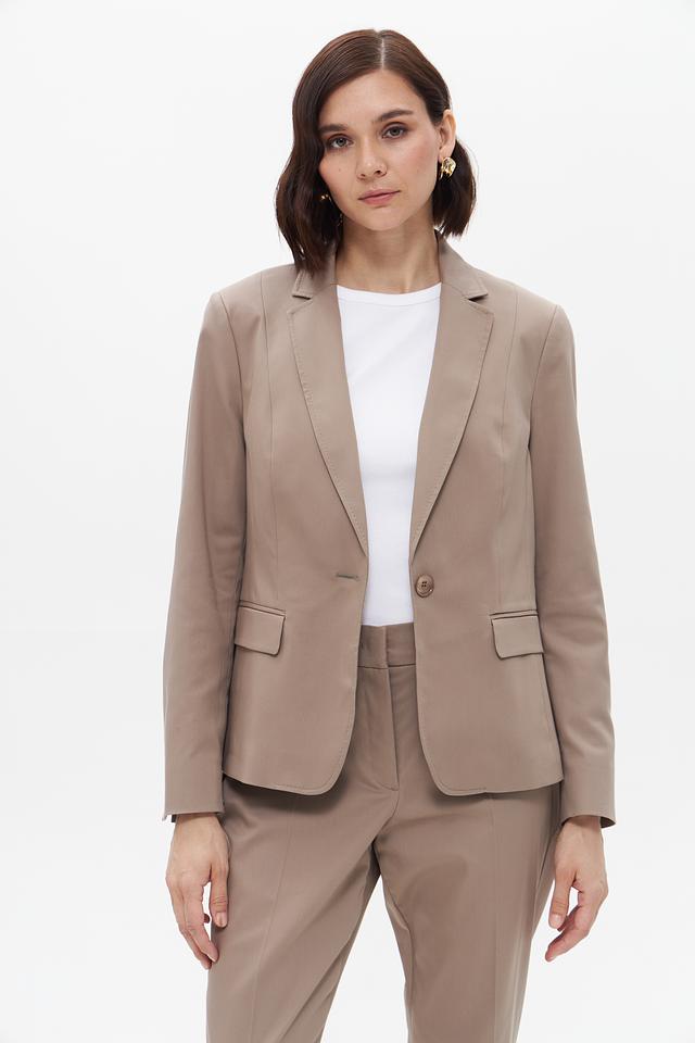 Бежевый жакет Bianca приталенного силуэта выполнен из хлопка с добавлением полиэстера и эластана. Классический крой и лаконичный дизайн делают этот жакет универсальным элементом гардероба. Состав: хлопок 72%, полиэстер 24%, эластан 4%