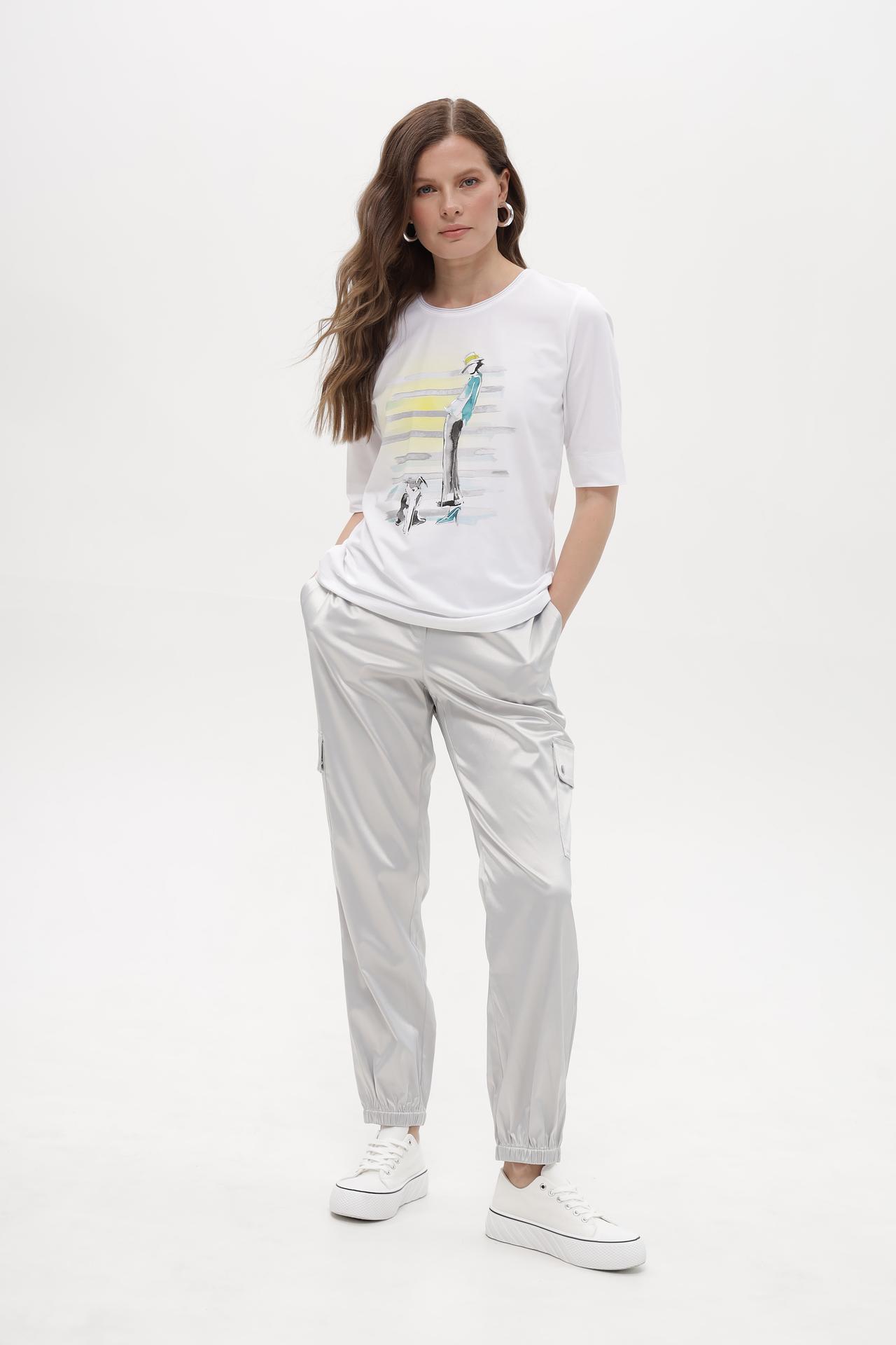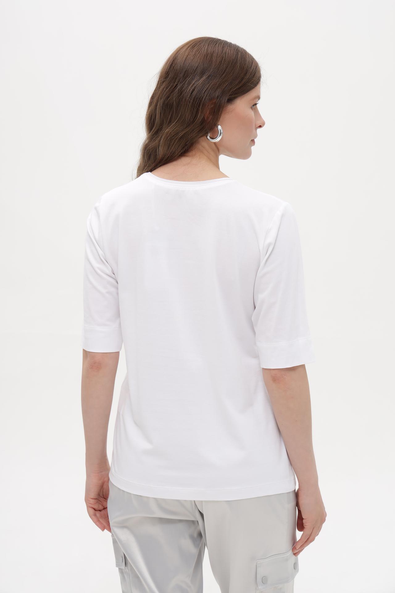 - Универсальность. Благодаря классическому фасону и среднему рукаву, эта базовая футболка легко сочетается с джинсами, брюками или юбками. Она станет основой для создания как расслабленных летних, так и более элегантных комплектов для любого случая.