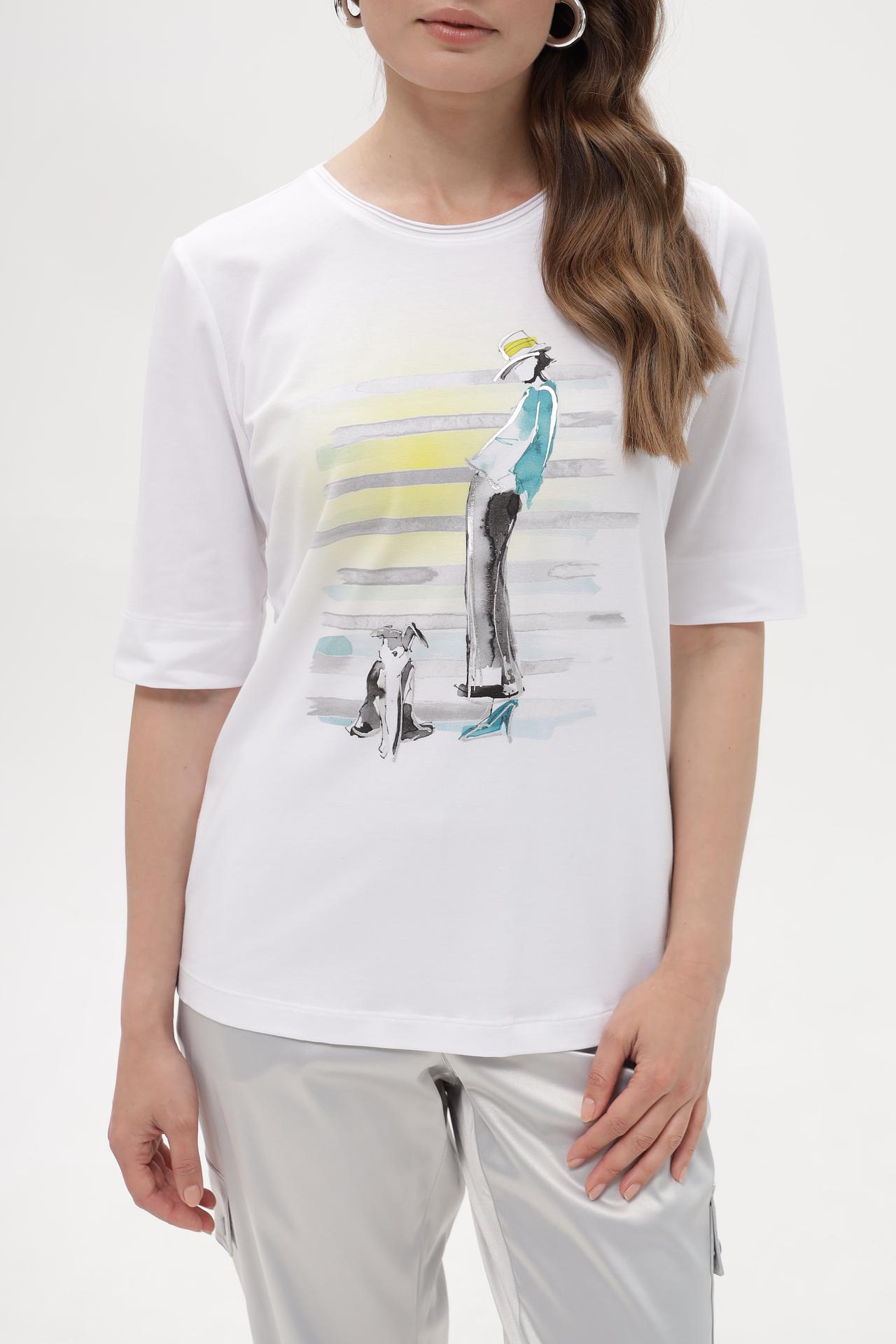 Футболка Bianca – идеальный выбор для вашего гардероба. Эта женская футболка выполнена из высококачественной вискозы с добавлением эластана, что обеспечивает невероятный комфорт и долговечность. Классический крой и уникальный принт делают ее идеальной для повседневного образа, добавляя свежести и стиля.