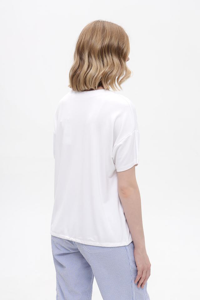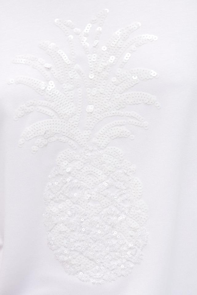 Белая футболка Bianca с принтом ананаса – стильная и комфортная модель из вискозы с добавлением эластана. Футболка имеет свободный крой и короткий рукав, идеально подходит для создания повседневных образов. Состав: вискоза 92%, эластан 8%