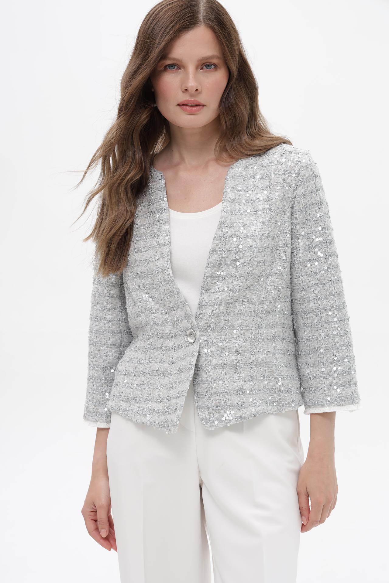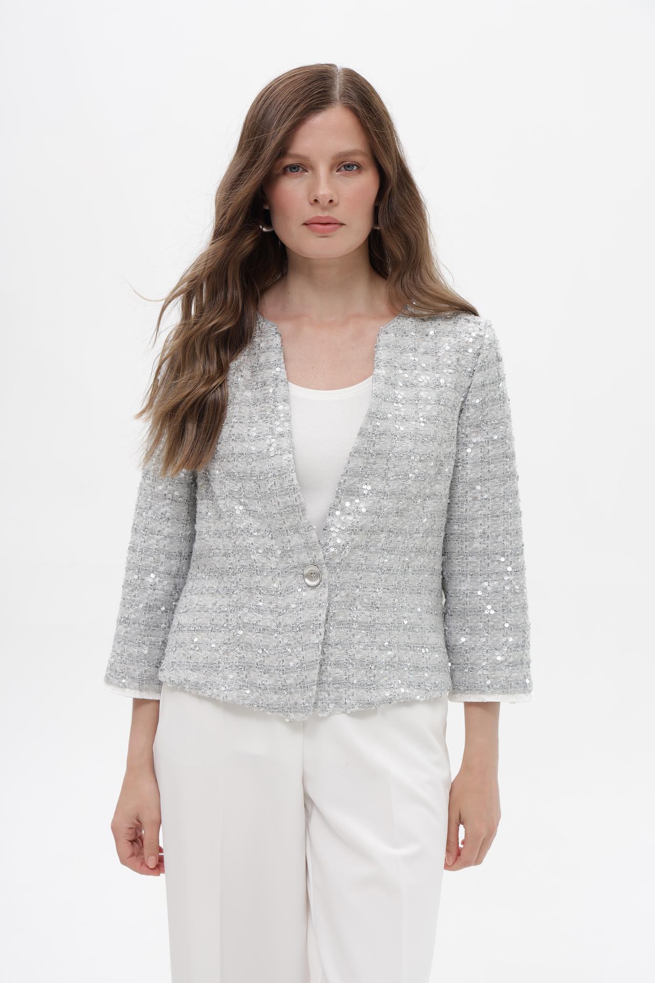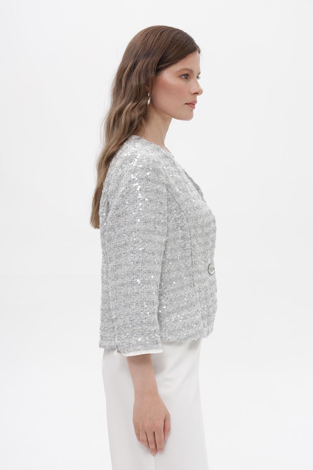 Жакет Bianca серебристый с пайетками и твидовой фактурой