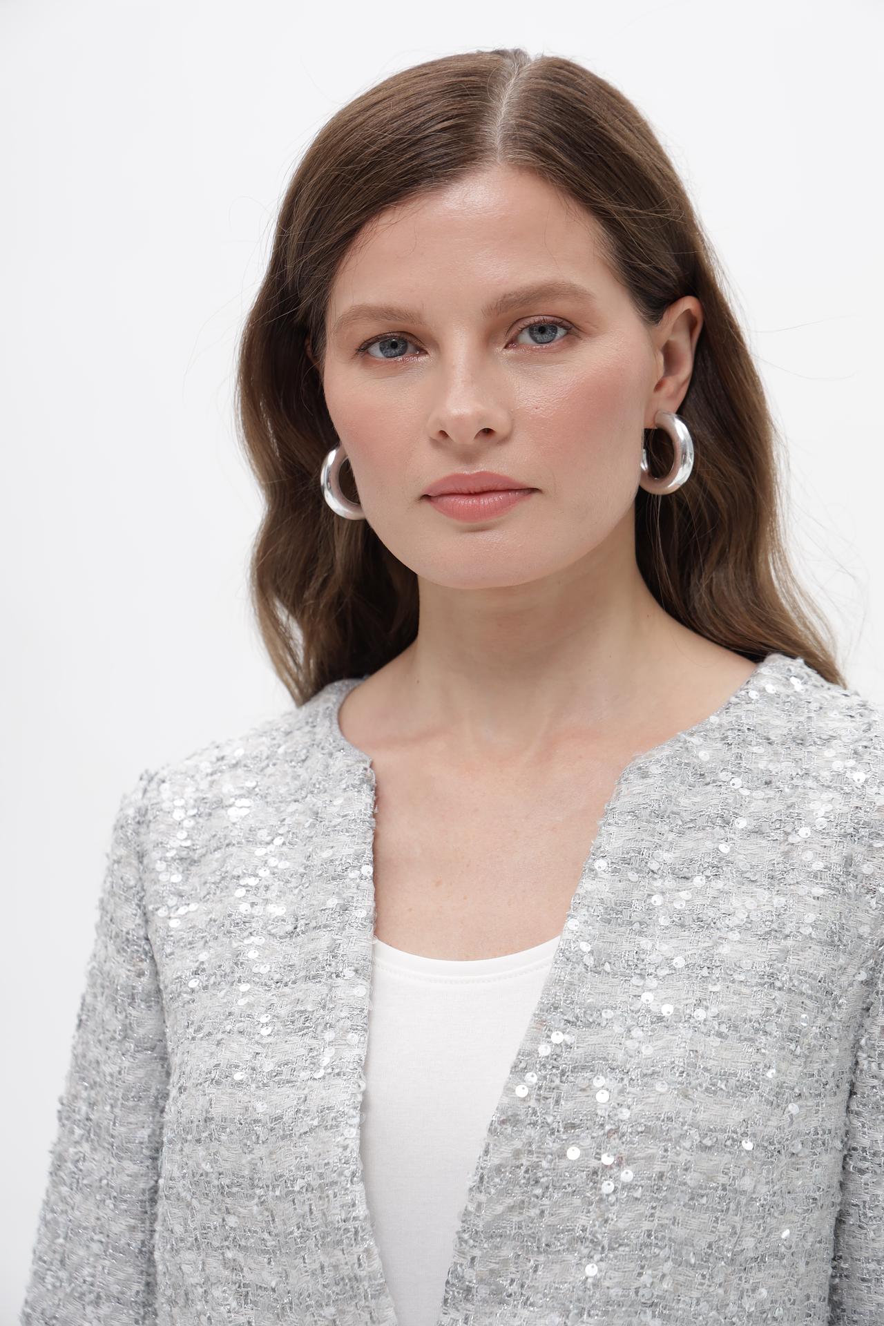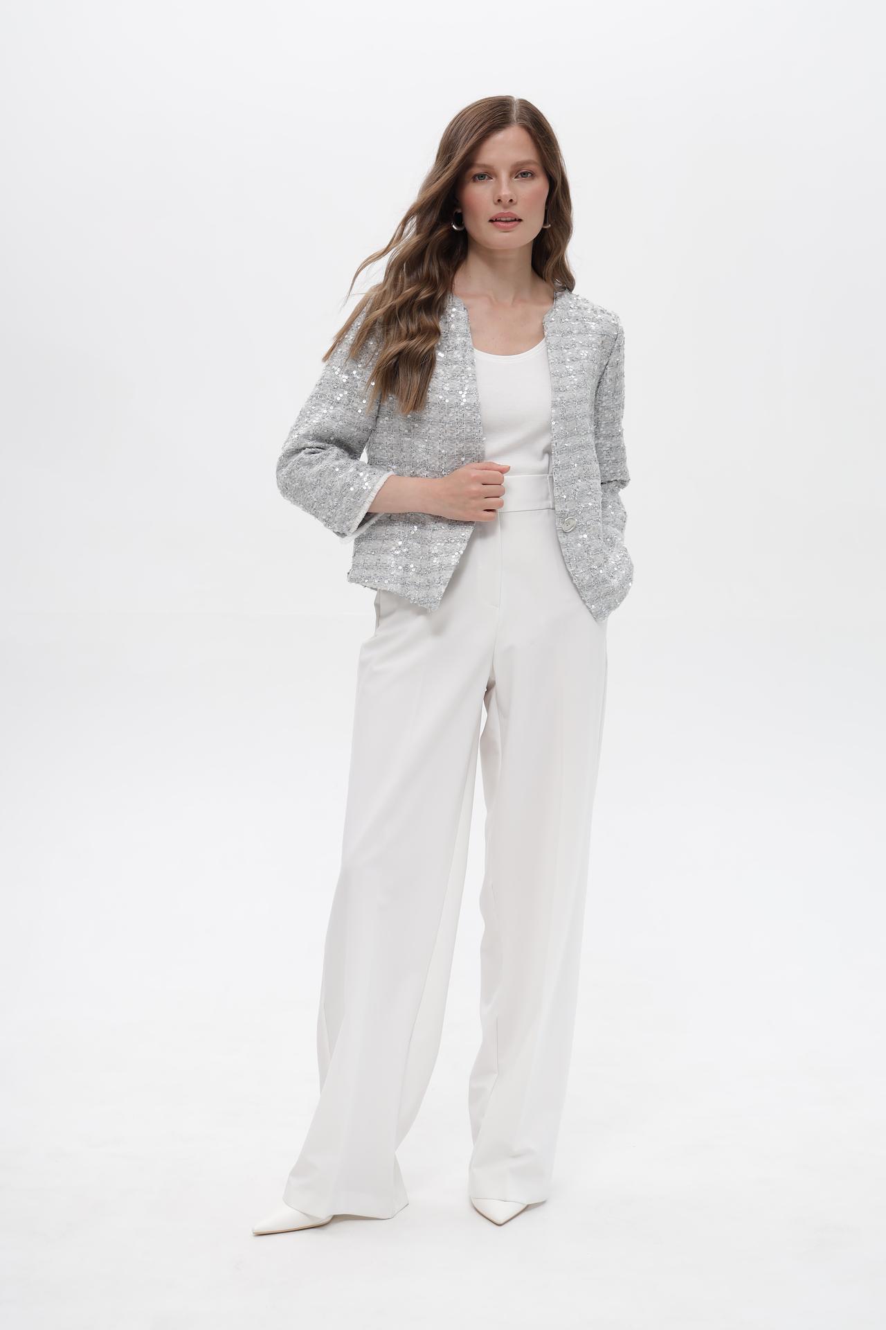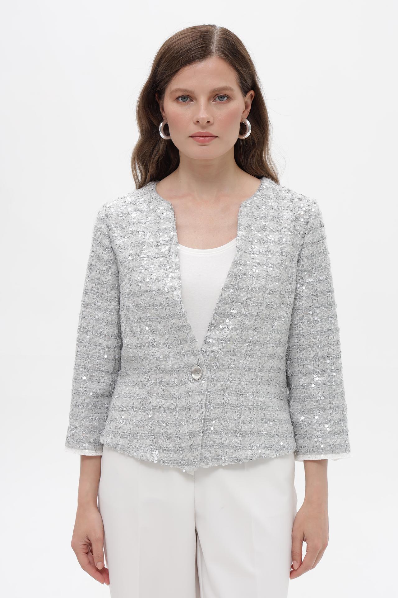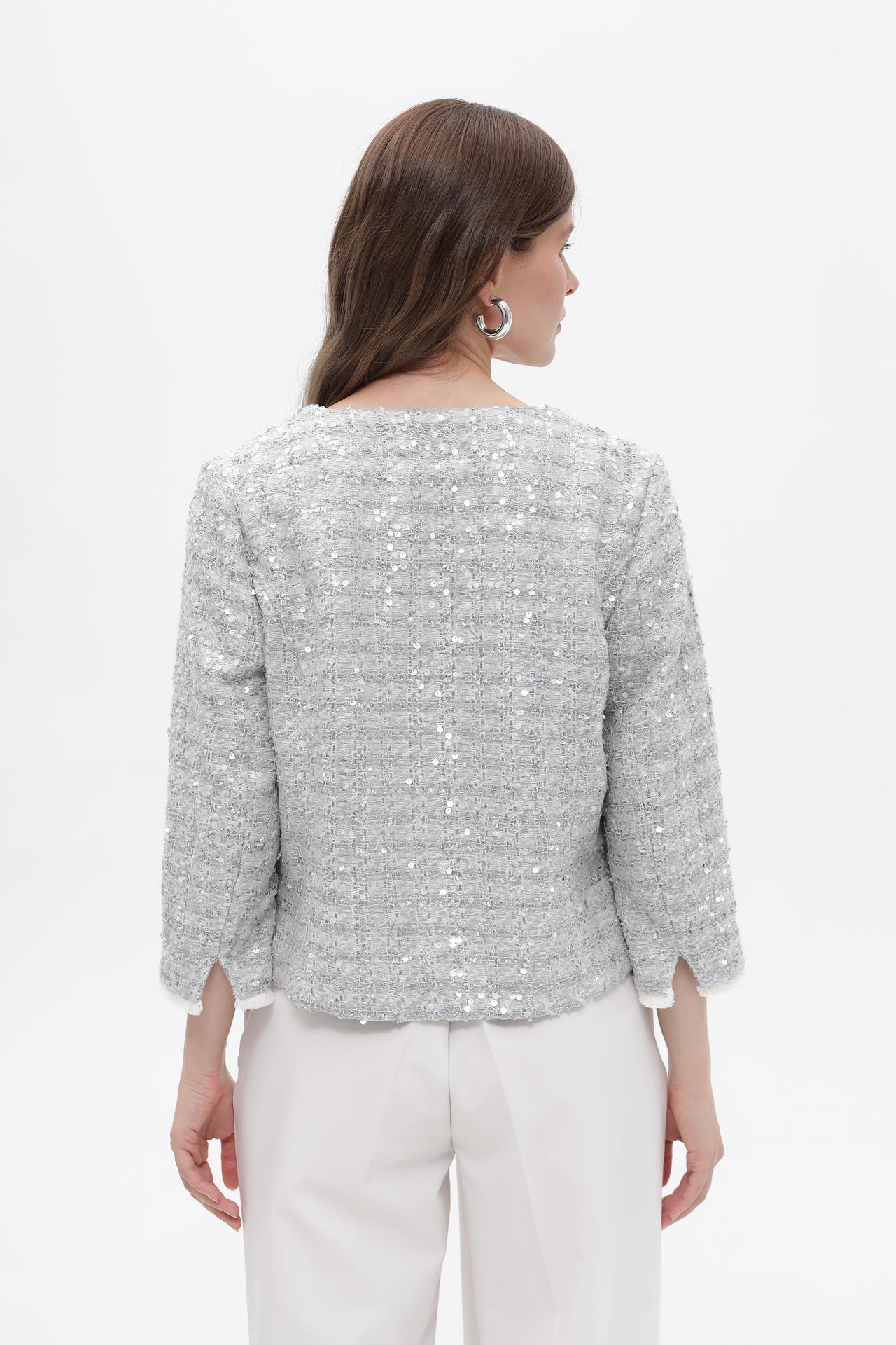 Жакет Bianca серебристый с пайетками и твидовой фактурой