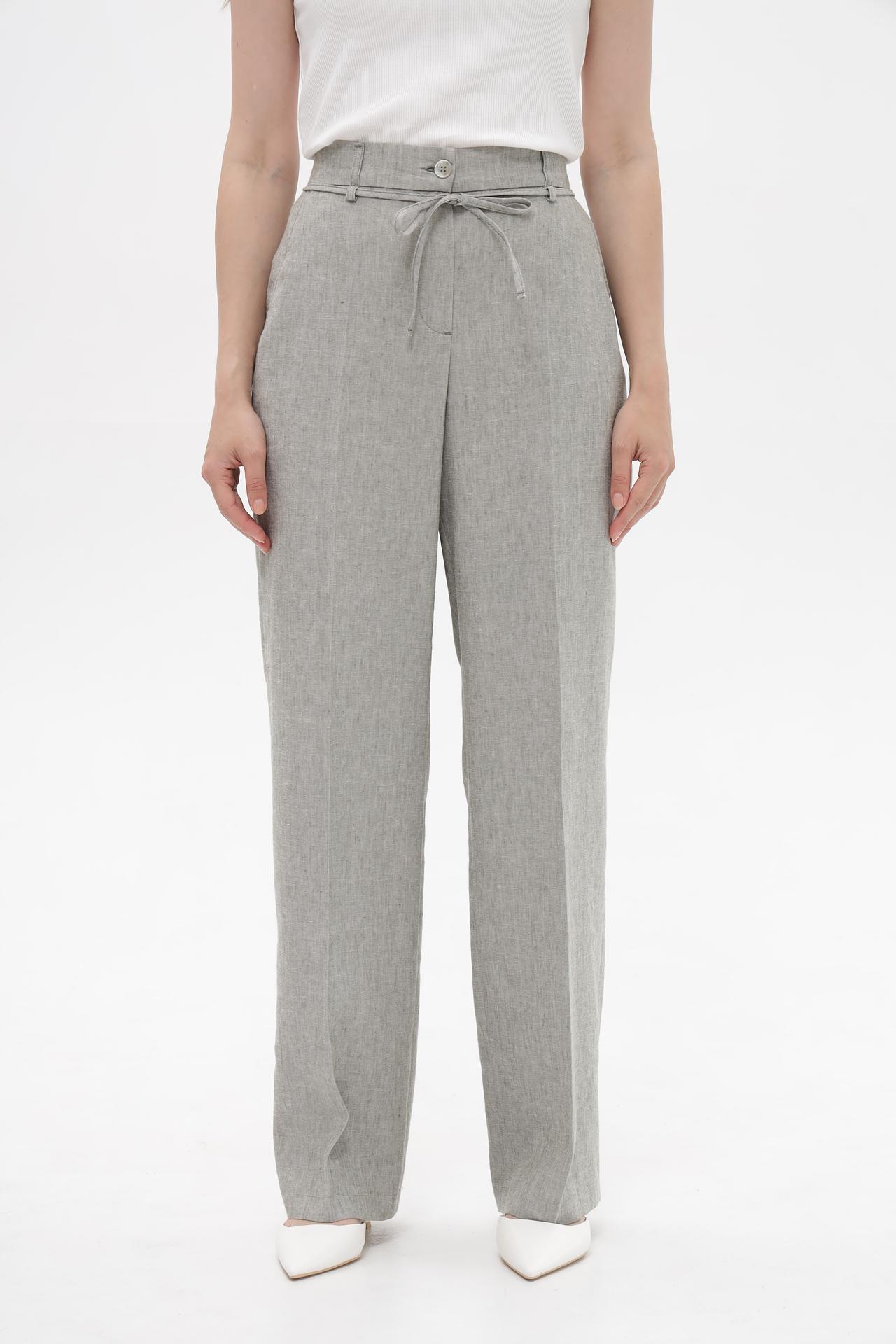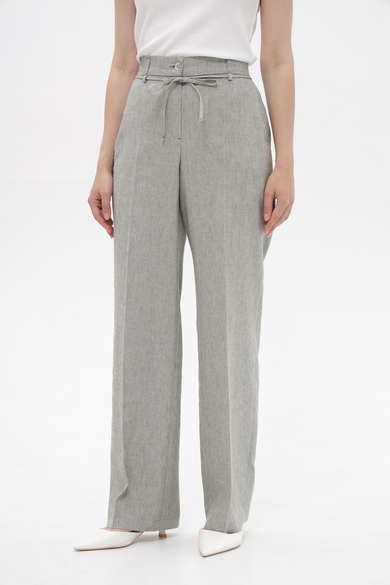 - Стильный дизайн: Классический прямой крой брюк визуально удлиняет ноги и создает элегантный силуэт. Декоративный шнурок на поясе добавляет образу изюминку.