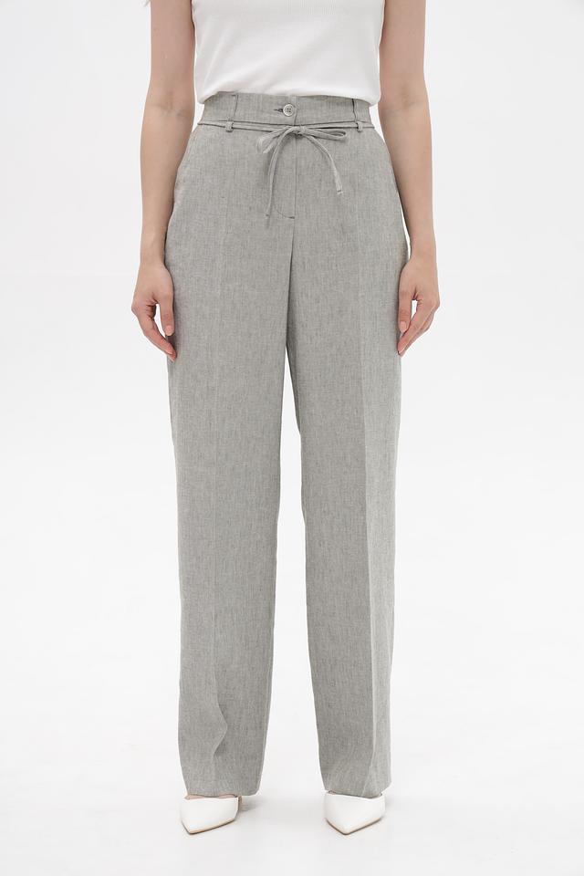 Серые брюки от Bianca с удобным поясом-завязкой, выполненные из смесовой ткани с добавлением льна. Идеальный выбор для создания комфортных и стильных образов в тёплую погоду. Состав: лен 57%, полиэстер 23%, лиоцел 17%, эластан 3%
