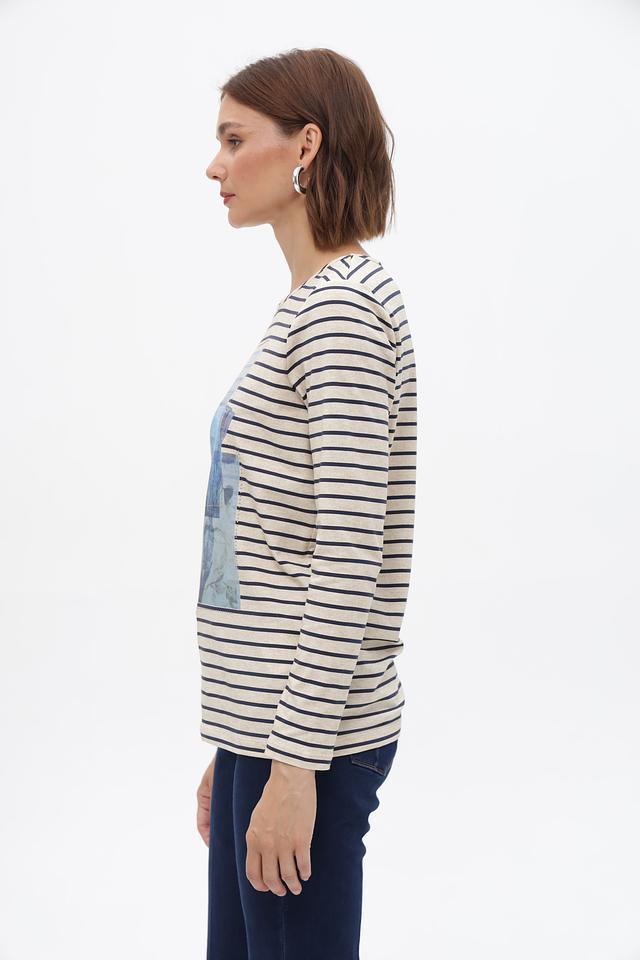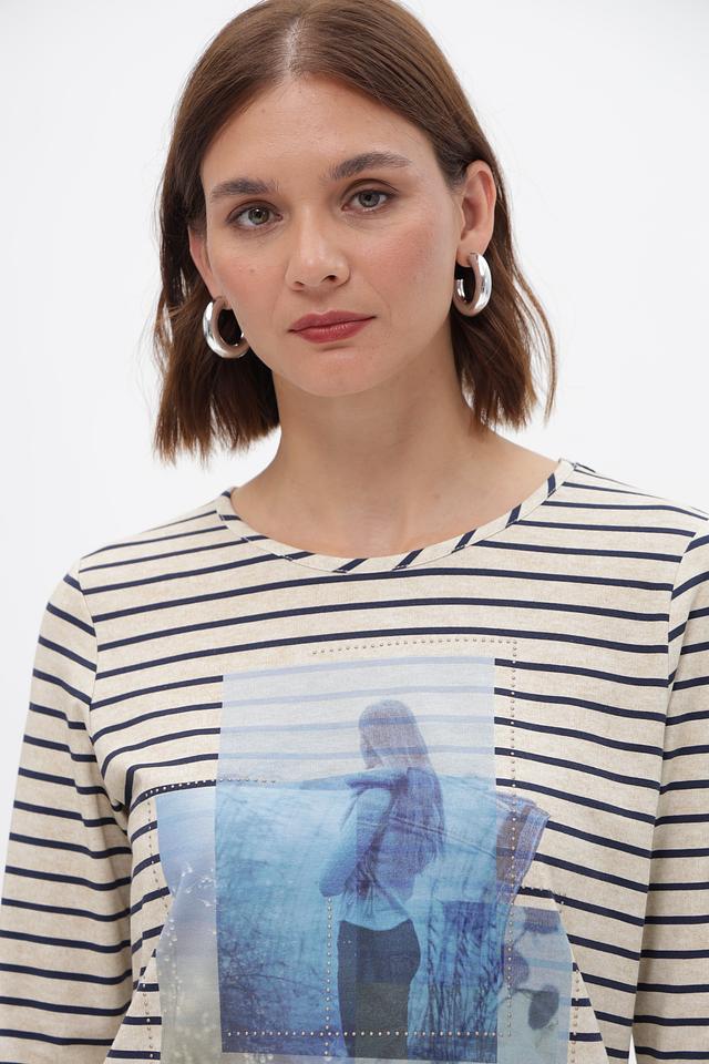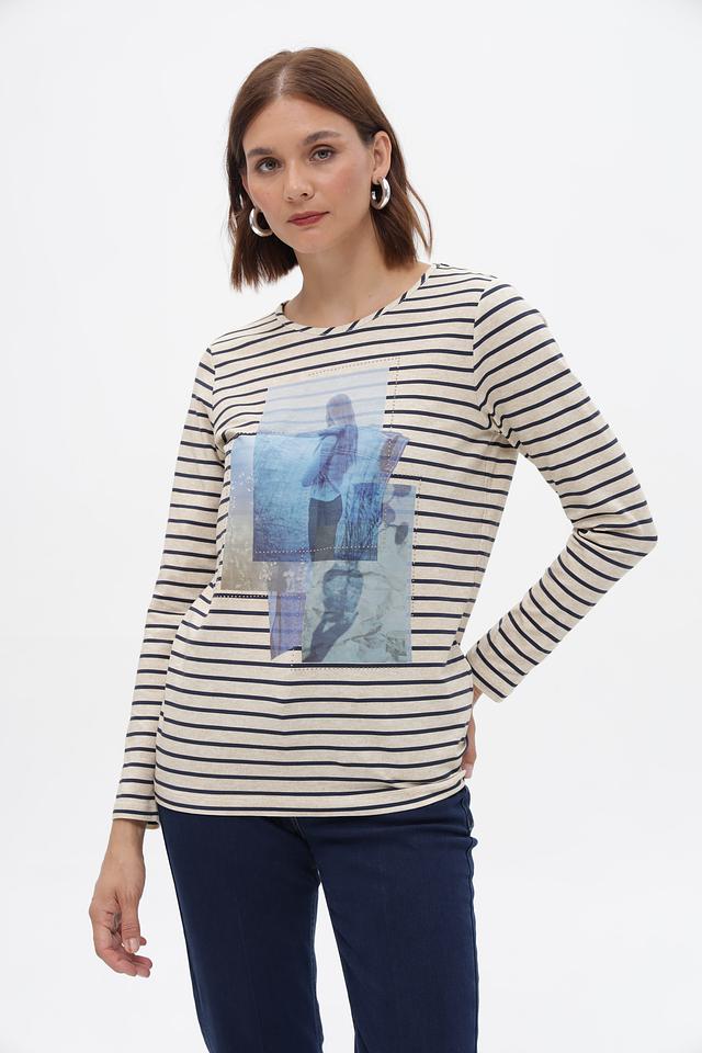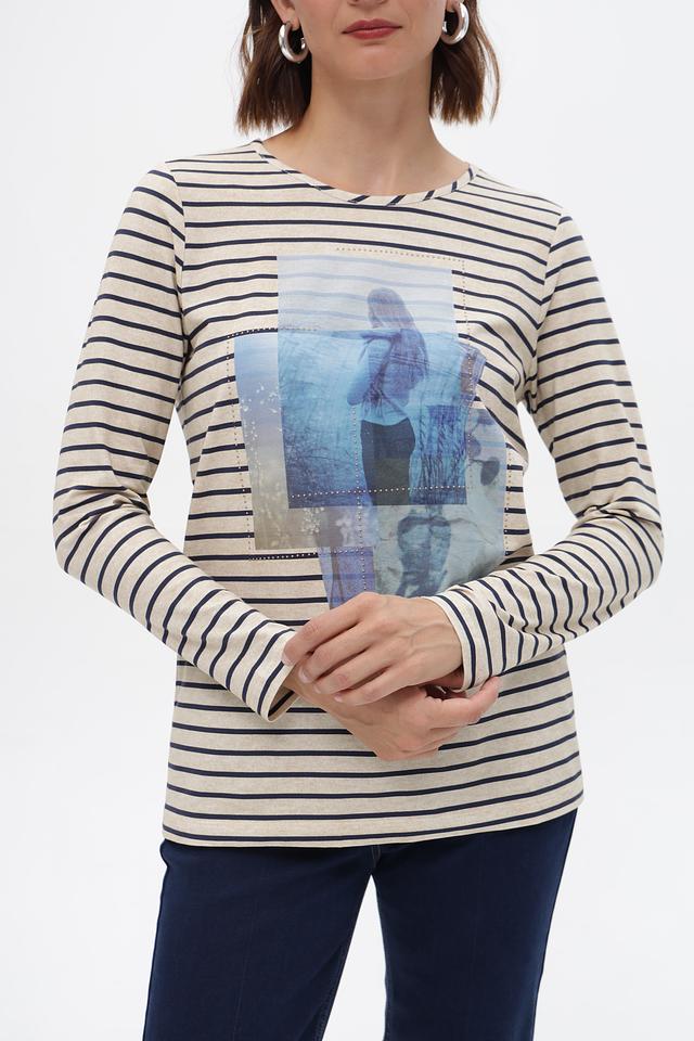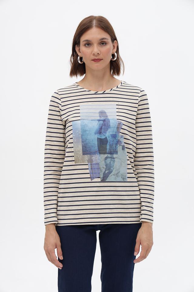 Женская футболка Bianca бежевого цвета с длинным рукавом и оригинальным принтом. Изготовлена из мягкого хлопка с добавлением эластана для комфорта и лучшей посадки. Состав: хлопок 92%, эластан 8%