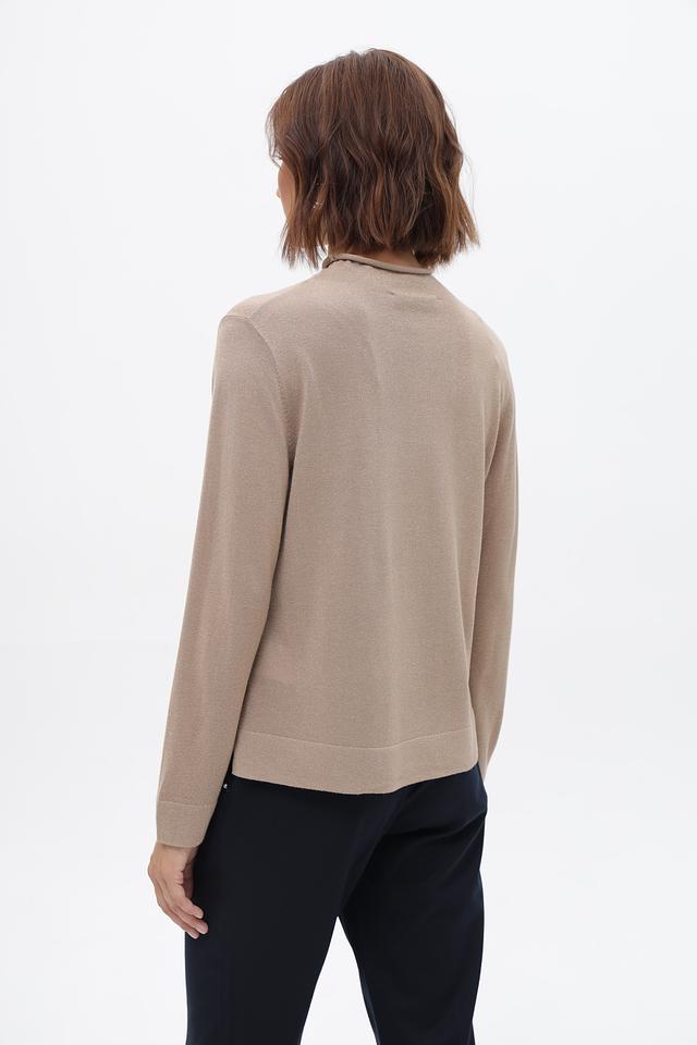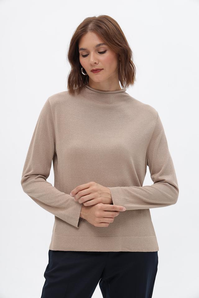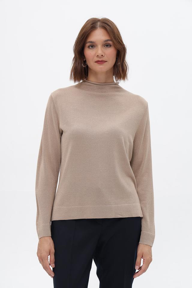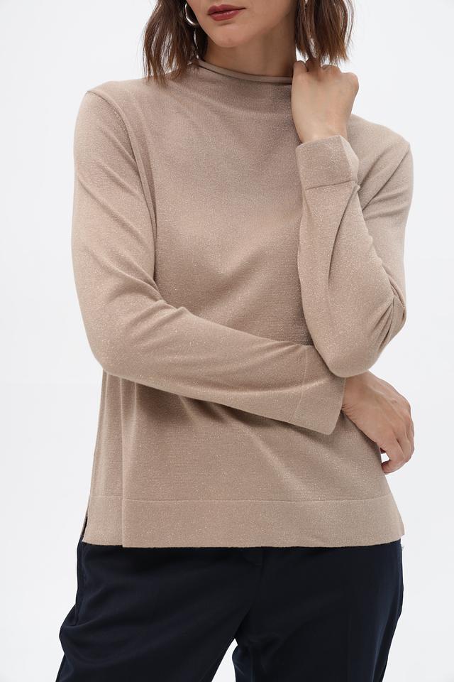 Бежевый пуловер от Bianca с добавлением люрекса – это стильное и комфортное решение для создания повседневных образов. Изготовлен из мягкой вискозы, отличается приятной текстурой и деликатным блеском. Состав: вискоза 80%, метализ.нить 20%