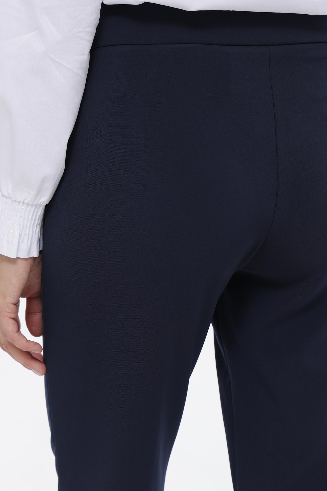 - Универсальность: Темно-синий цвет позволяет легко сочетать брюки с различными блузками, рубашками и жакетами, создавая множество стильных комбинаций для любого случая.