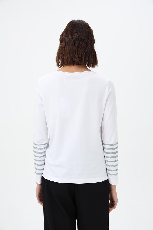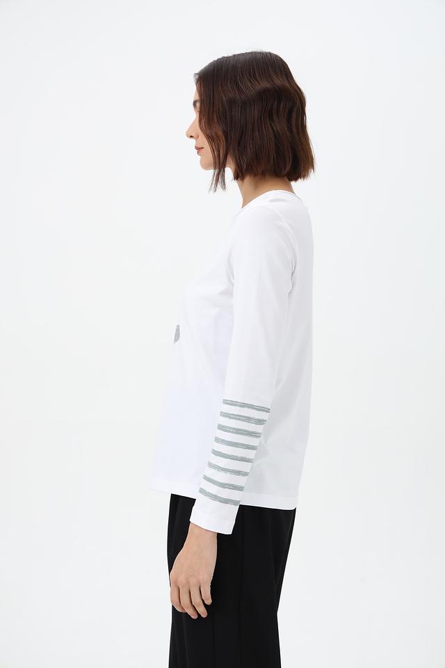 Белая блуза Bianca с длинным рукавом и ярким принтом станет отличным дополнением к вашему гардеробу. Изготовлена из мягкого хлопка с добавлением эластана для комфорта. Подходит для создания повседневных образов. Состав: хлопок 92%, эластан 8%
