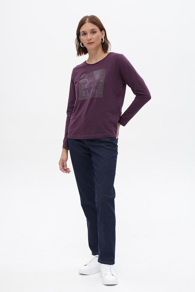 Футболка Bianca пурпурного цвета с длинным рукавом и ярким принтом. Изготовлена из мягкого хлопка с добавлением эластана для комфорта и хорошей посадки. Идеально подойдет для создания стильного повседневного образа. Состав: хлопок 92%, эластан 8%
