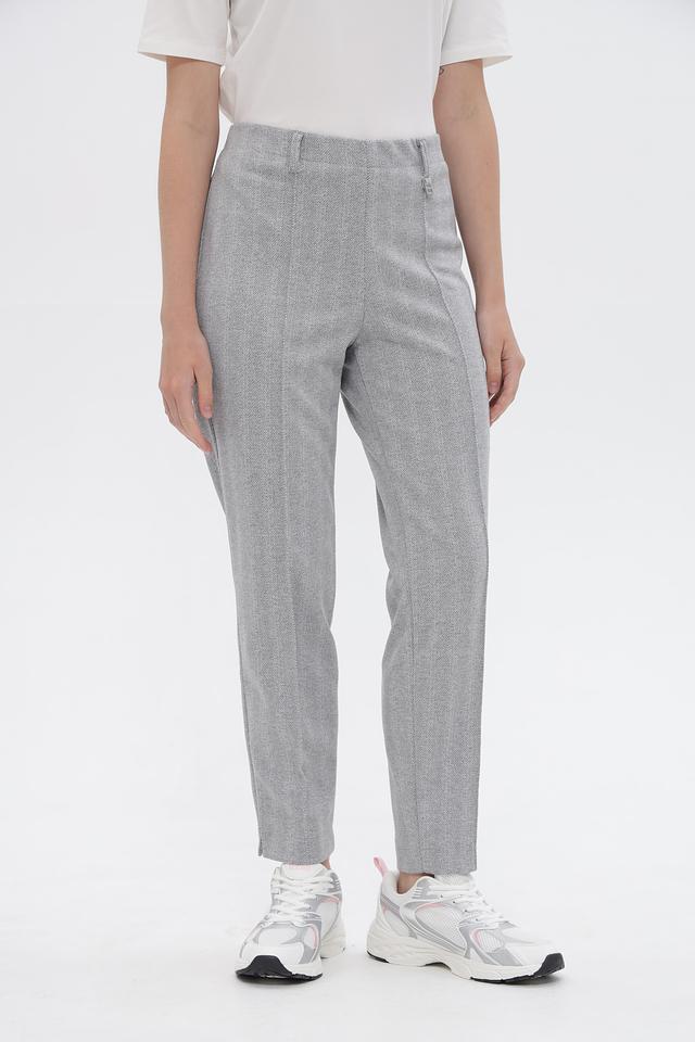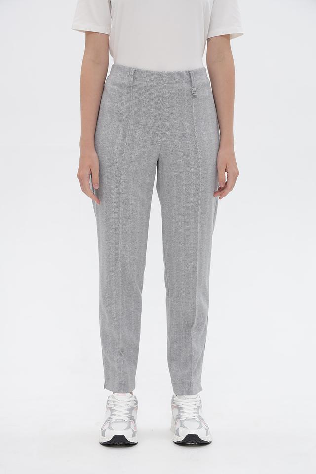 Серые брюки Bianca из полиэстера с добавлением вискозы и эластана. Классический крой, высокая посадка и клетчатый принт делают эту модель универсальным элементом гардероба. Состав: полиэстер 84%, вискоза 12%, эластан 4%