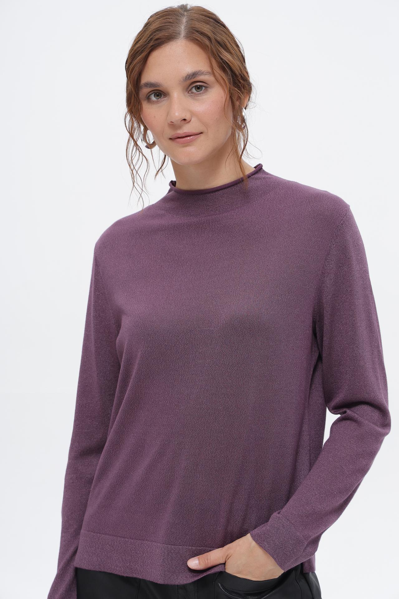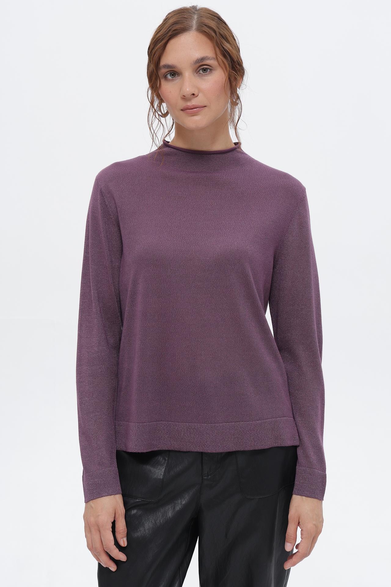 Элегантный пуловер Bianca станет незаменимой вещью в вашем гардеробе, сочетая в себе комфорт и изысканный стиль. Модель выполнена из высококачественной вискозы с добавлением металлизированной нити, что придает изделию легкое мерцание и делает его более нарядным. Классический крой с длинными рукавами и высоким горлом обеспечивает уют и тепло, а универсальный сиреневый оттенок прекрасно дополнит как повседневные, так и вечерние образы. Этот пуловер - идеальный выбор для создания утонченных и модных ансамблей.