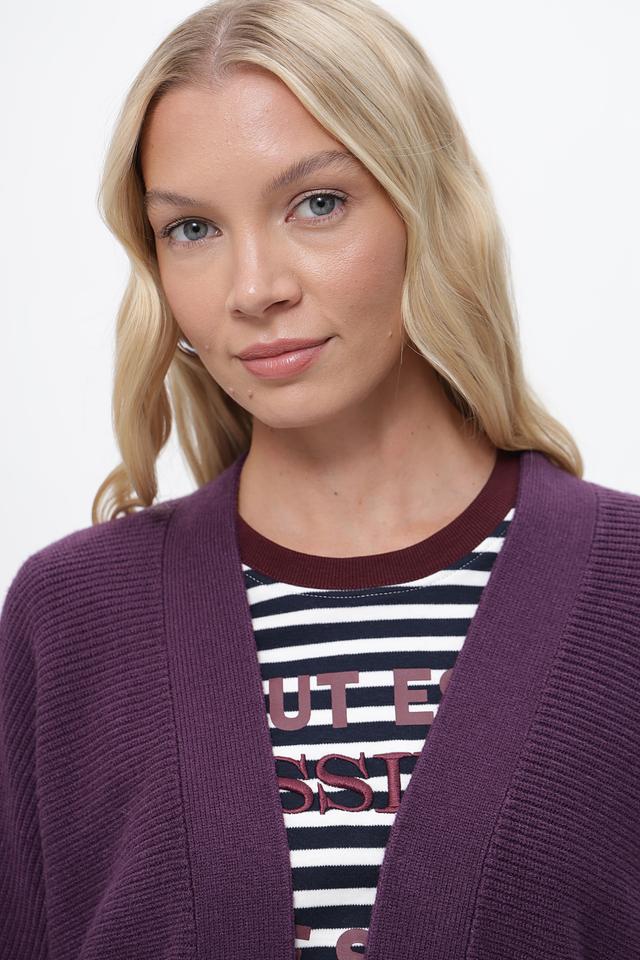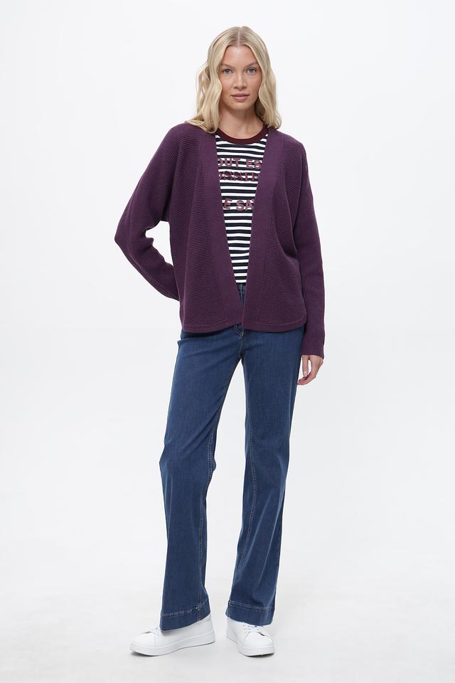 Пурпурный жакет от Bianca выполнен из мягкого трикотажа с текстурной вязкой. Модель свободного кроя с V-образным вырезом и длинными рукавами. Состав: вискоза, полиэстер, полиамид. Состав: вискоза 53%, полиэстер 24%, полиамид 23%