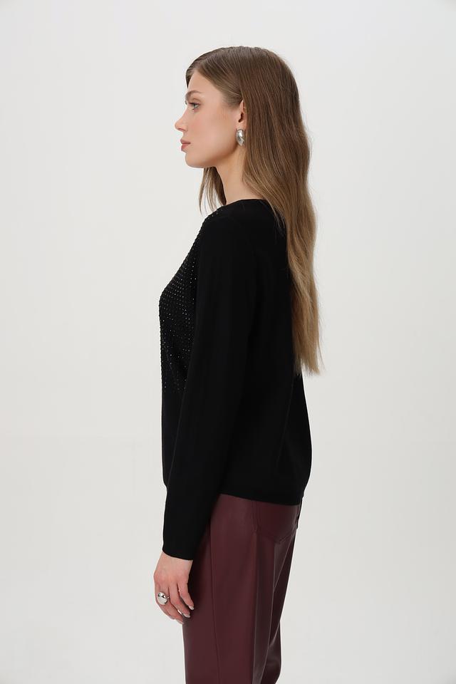 Этот пуловер прекрасно сочетается с брюками, юбками и джинсами, позволяя создавать разнообразные комплекты на любой случай. Он идеально подойдет для вечерних выходов, особых мероприятий или для повседневной носки, если вы хотите добавить немного блеска в свой образ.