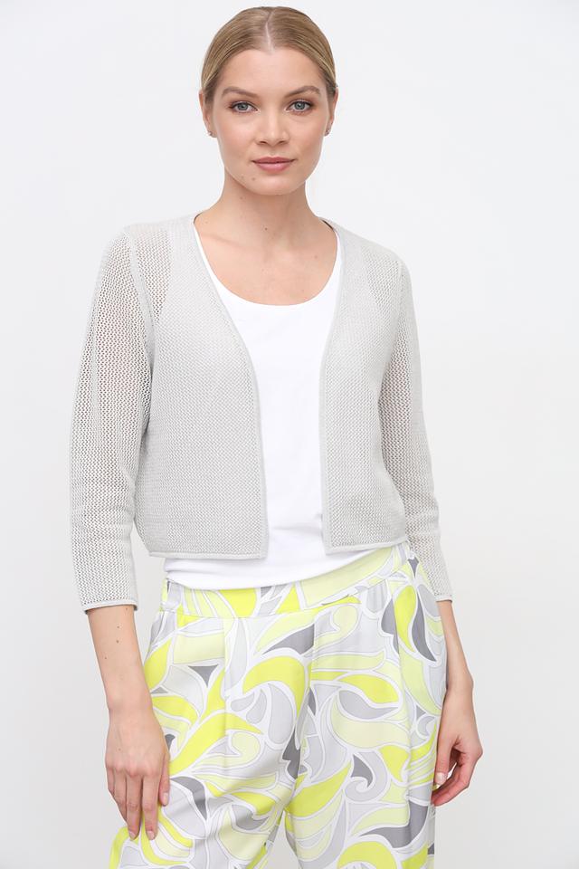 Серый жакет Bianca из сетчатого полотна станет стильным дополнением к вашему образу. Укороченный крой и 3/4 рукава придают модели лёгкость и актуальность. Жакет выполнен из полиакрила, хлопка и метализированной нити. Состав: полиакрил 48%, хлопок 39%, метализ.нить 13%
