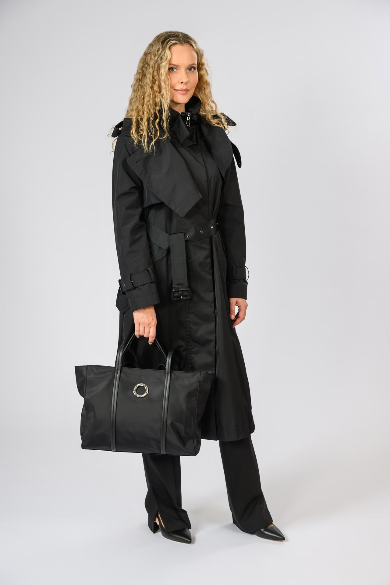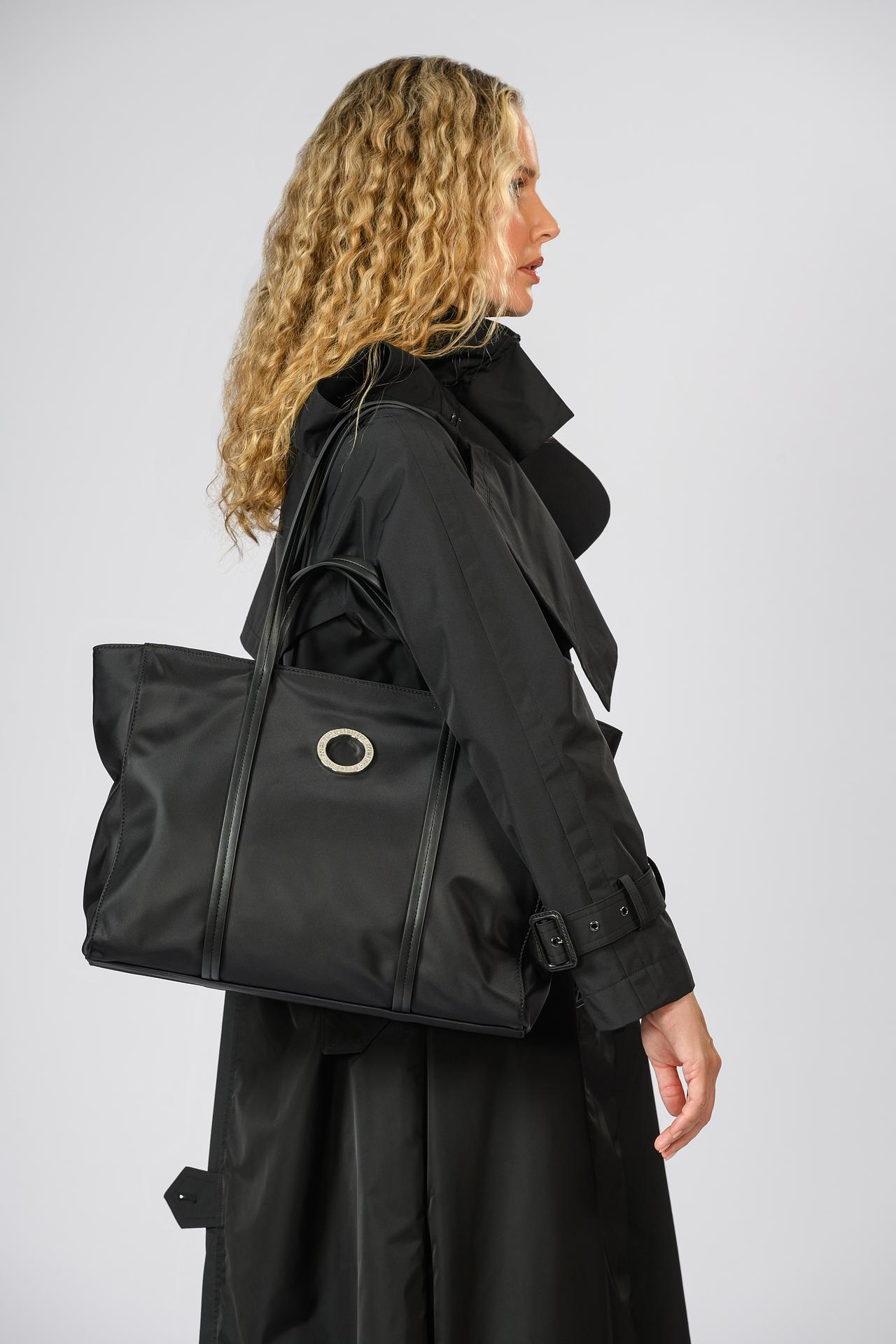 - Дизайн: Классическая форма и элегантный черный цвет делают эту модель универсальной. Тонкие кожаные ручки добавляют изысканности.