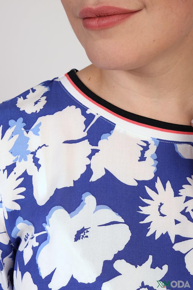 Блуза Betty Barclay синего цвета с ярким цветочным принтом – стильное и комфортное решение для создания повседневного образа. Модель выполнена из мягкой вискозы, что обеспечивает приятные ощущения при носке и отличную посадку по фигуре. Состав: вискоза 100%