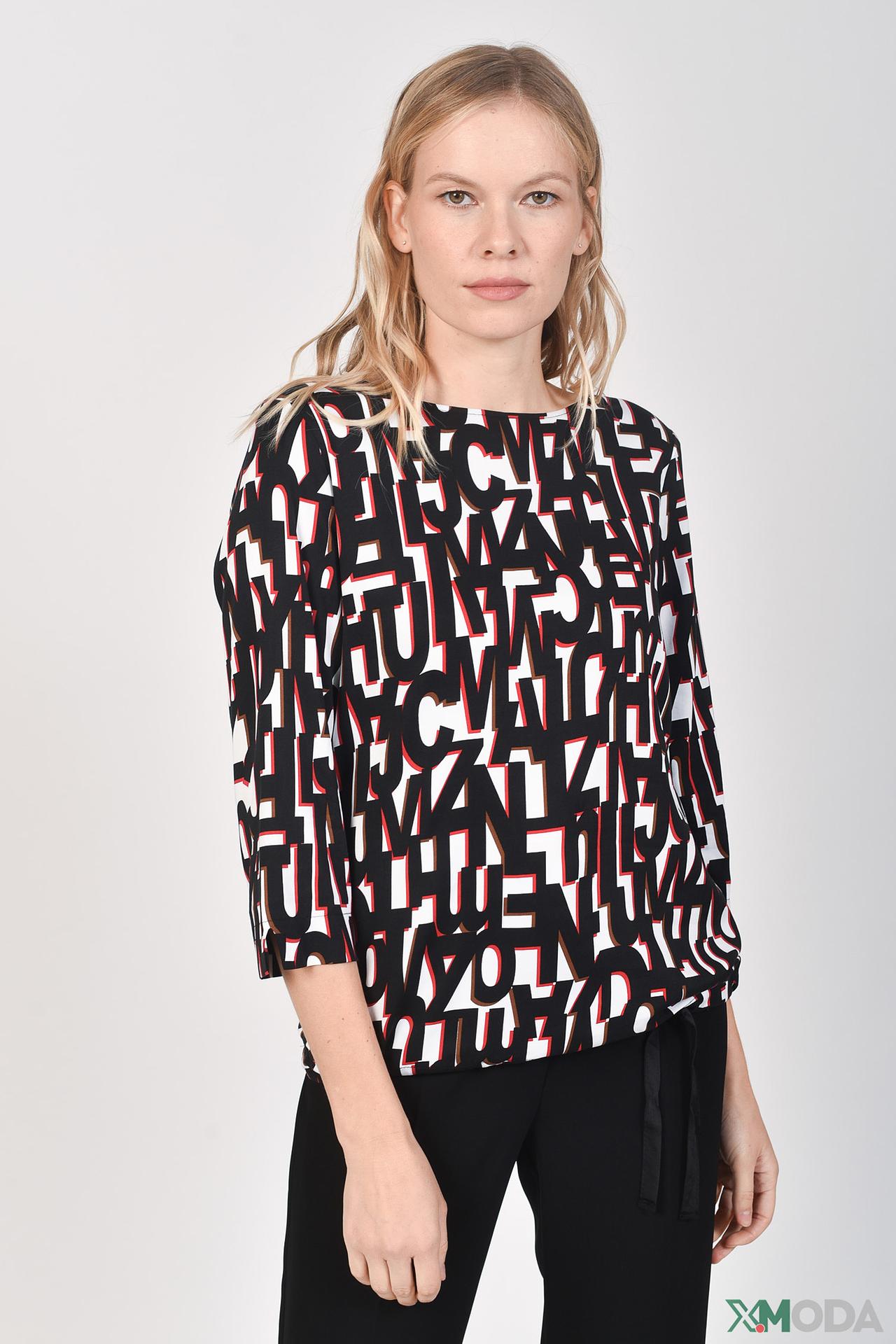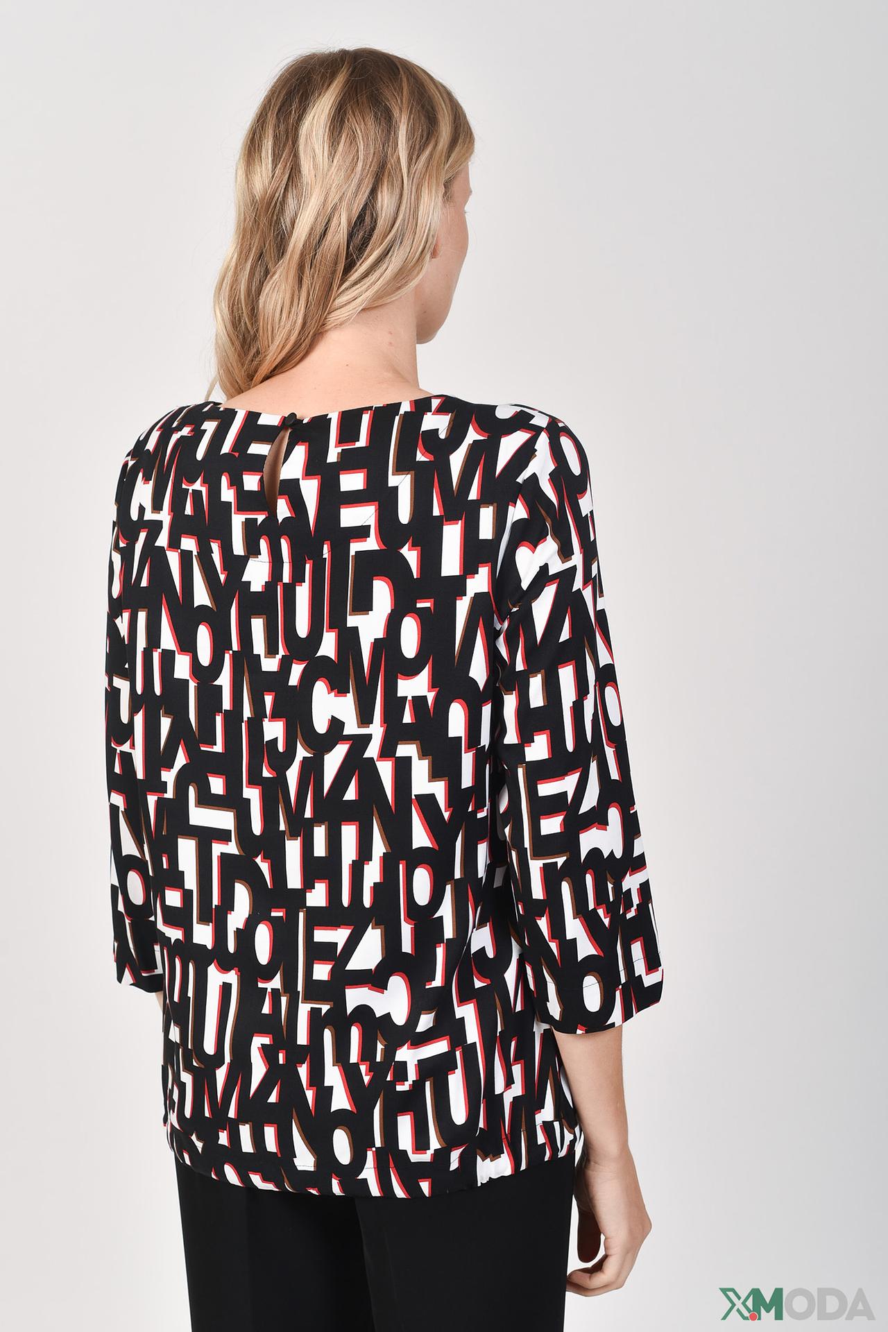 Стильная блуза Bianca с оригинальным принтом в виде букв станет ярким акцентом в вашем образе. Модель выполнена из высококачественных материалов, сочетающих натуральную вискозу с небольшим добавлением эластана для комфортной посадки и идеальной драпировки.